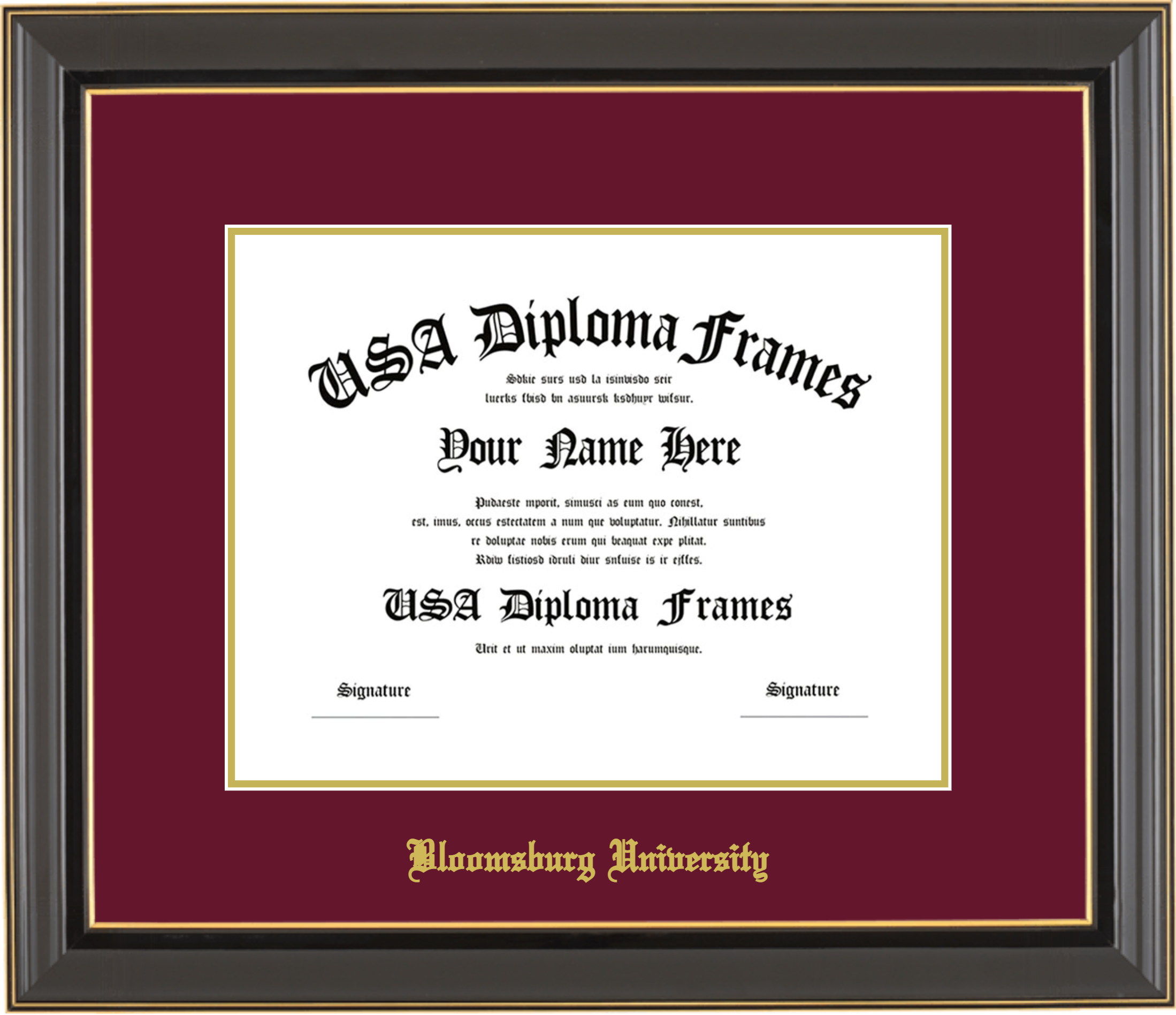 Bloomsburg University – Single Horizontal Document ( Diploma ) – Black Gold Trim Glossy – Maroon Mat – Gold Accent Mat – With Gold Embossing (Bloomsburg University)