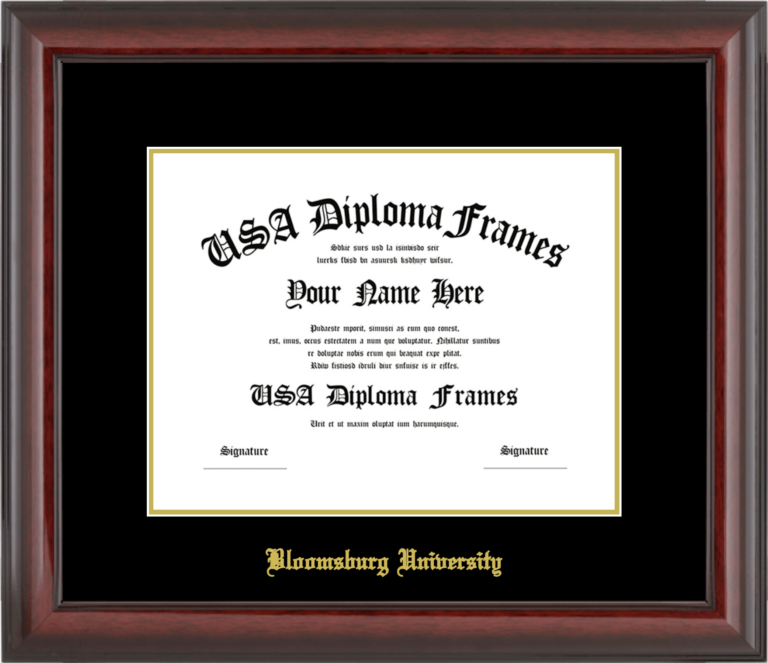 Bloomsburg University Diploma Frame – Cherry Mahogany Glossy – Black and Gold Mat