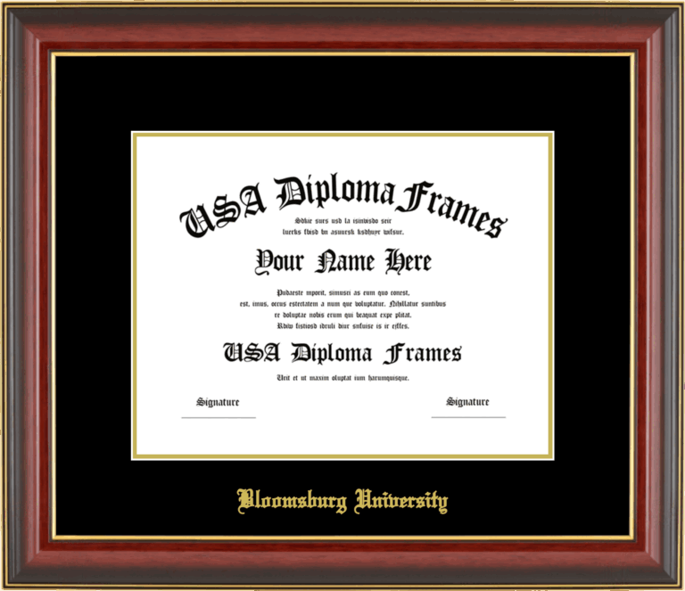 Want to explore more styles? Browse our full range of diploma frame layouts, or visit the Bloomsburg University to view options available for your school. Looking for a fully personalized design? Try our custom Frame Builder and create a frame that’s uniquely yours.