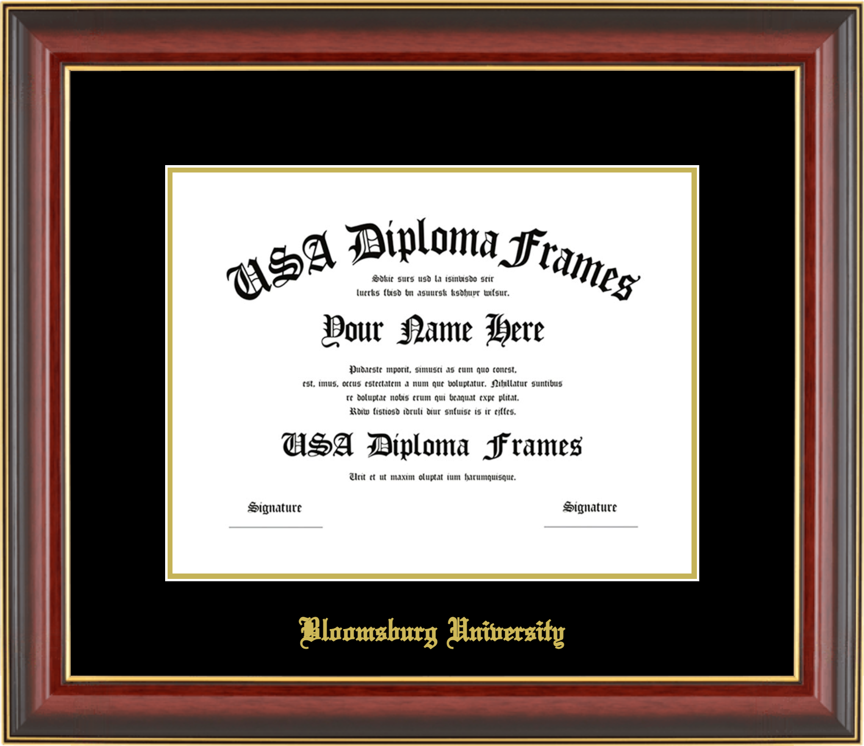 Bloomsburg University – Single Horizontal Document ( Diploma ) – Cherry Mahogany Gold Trim Glossy – Black Mat – Gold Accent Mat – With Gold Embossing (Bloomsburg University)