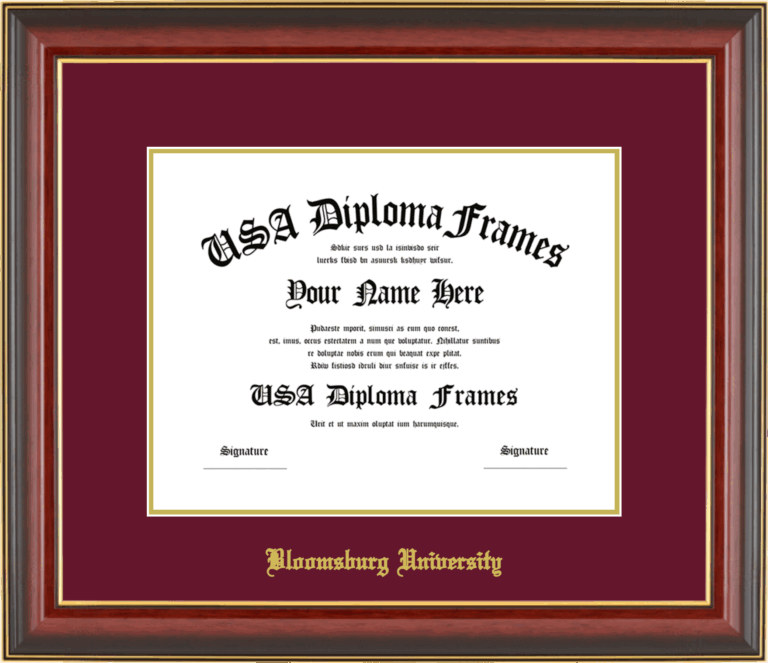 Want to explore more styles? Browse our full range of diploma frame layouts, or visit the Bloomsburg University to view options available for your school. Looking for a fully personalized design? Try our custom Frame Builder and create a frame that’s uniquely yours.