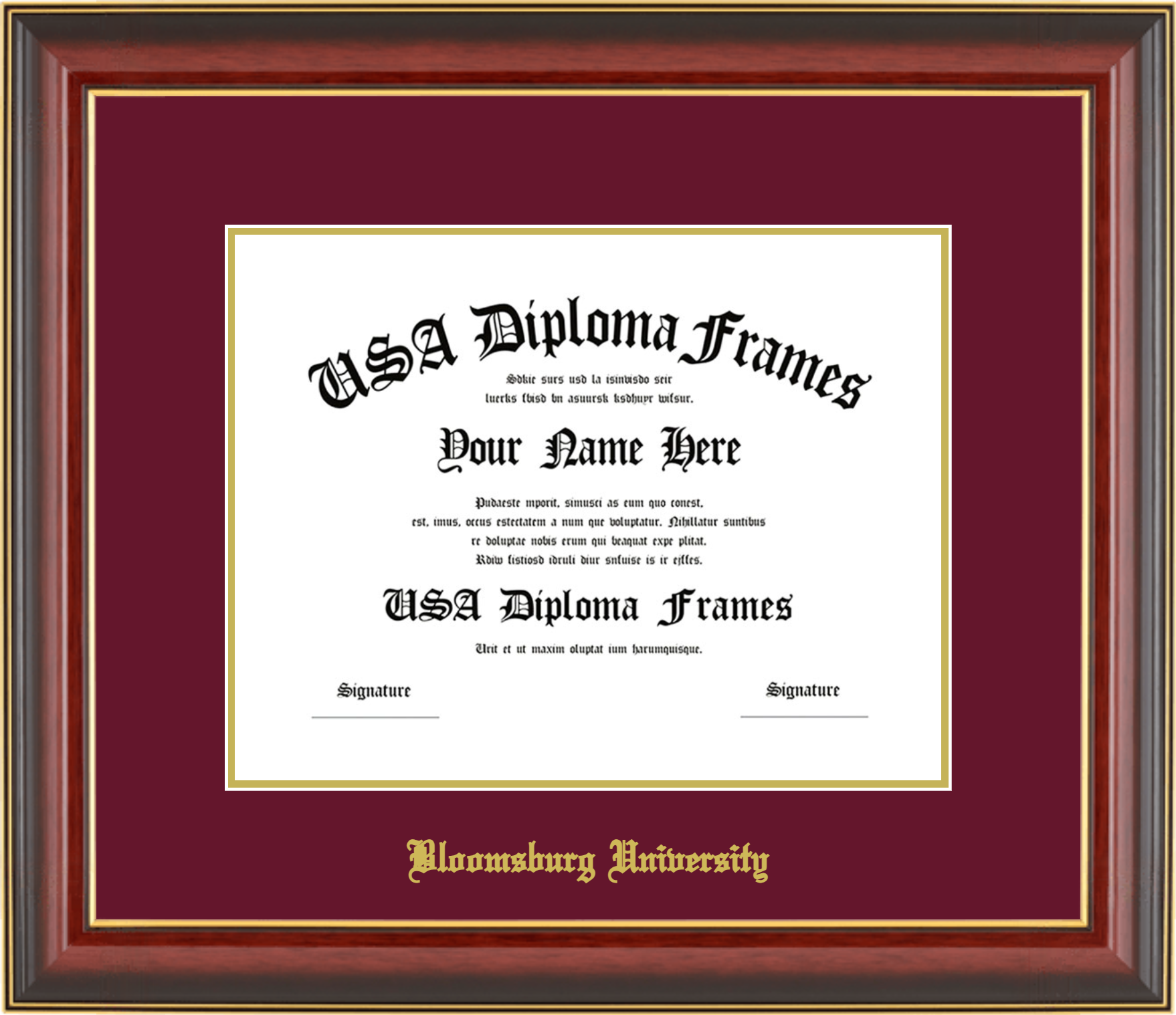 Bloomsburg University – Single Horizontal Document ( Diploma ) – Cherry Mahogany Gold Trim Glossy – Maroon Mat – Gold Accent Mat – With Gold Embossing (Bloomsburg University)