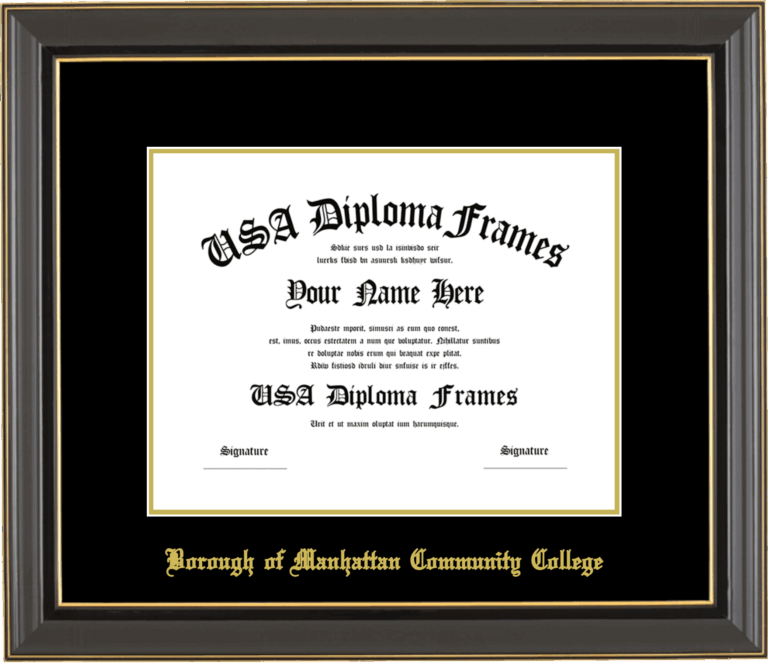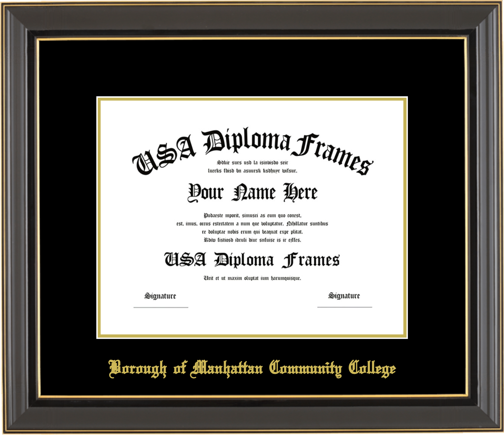 Borough of Manhattan Community College of the City University of New York Diploma Frame – Black Gold Trim Glossy – Black and Gold Mat
