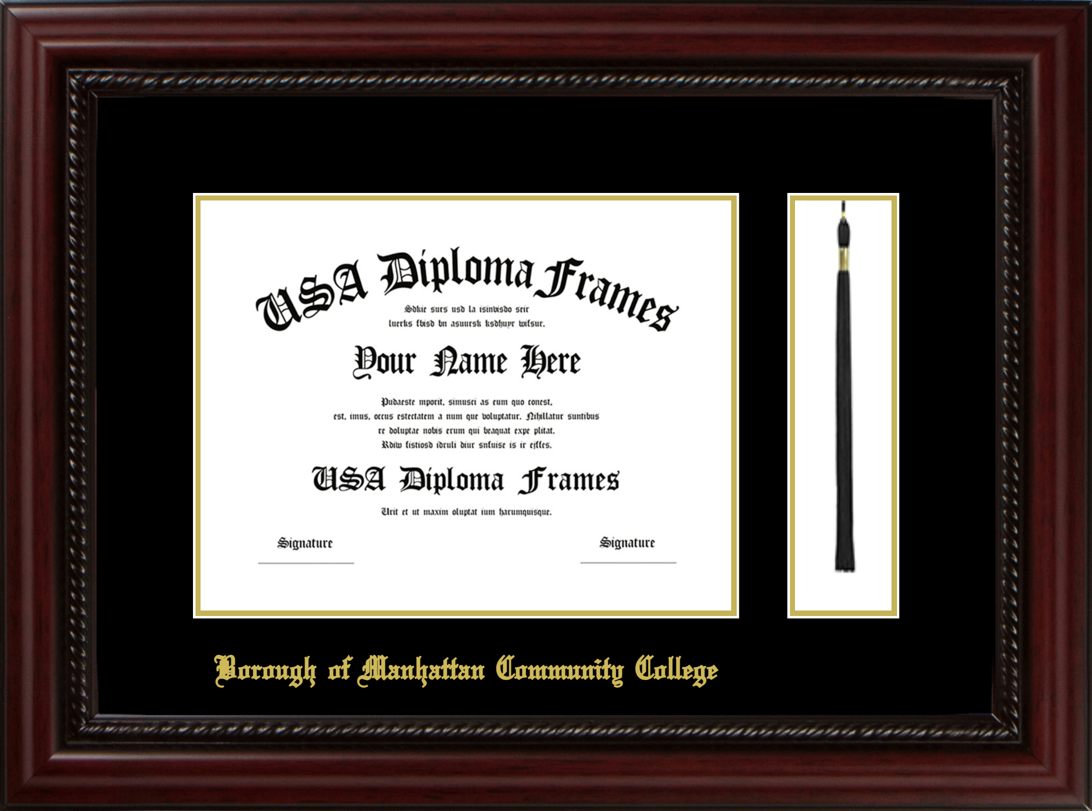 Borough of Manhattan Community College of the City University of New York Diploma Frame with Tassel – Executive Cherry Rope – Black and Gold Mat