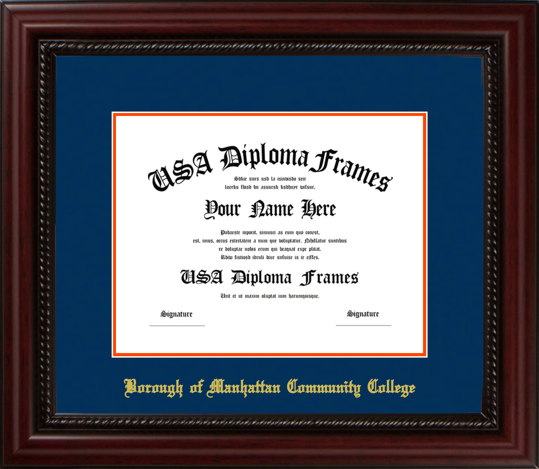 Borough of Manhattan Community College of the City University of New York Diploma Frame – Executive Cherry Rope – Navy and Orange Mat