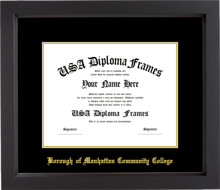 Borough of Manhattan Community College Diploma Frame – Black Matte – Black and Gold Mat