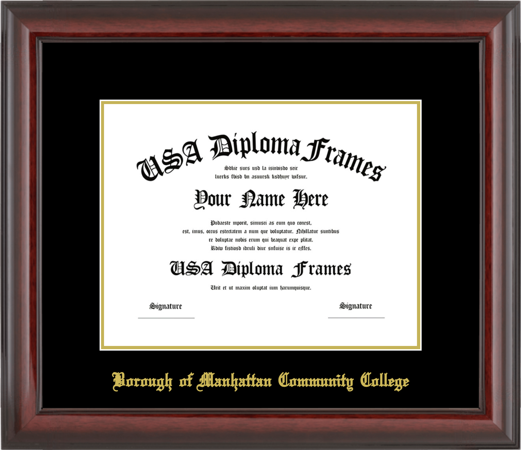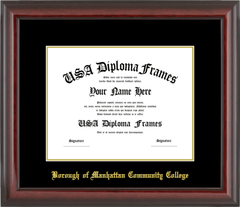 Borough of Manhattan Community College Diploma Frame – Cherry Mahogany Glossy – Black and Gold Mat