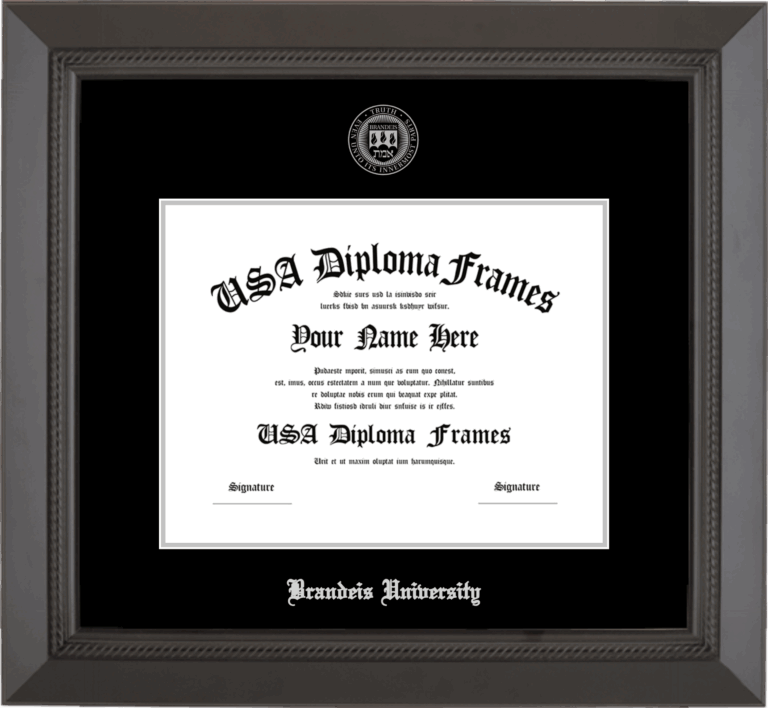 Brandeis University Diploma Frame – Black Rope – Black and Silver Mat