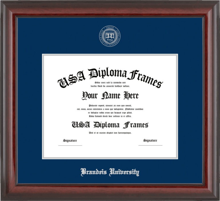 Brandeis University Diploma Frame – Cherry Mahogany Glossy – Navy and Silver Mat