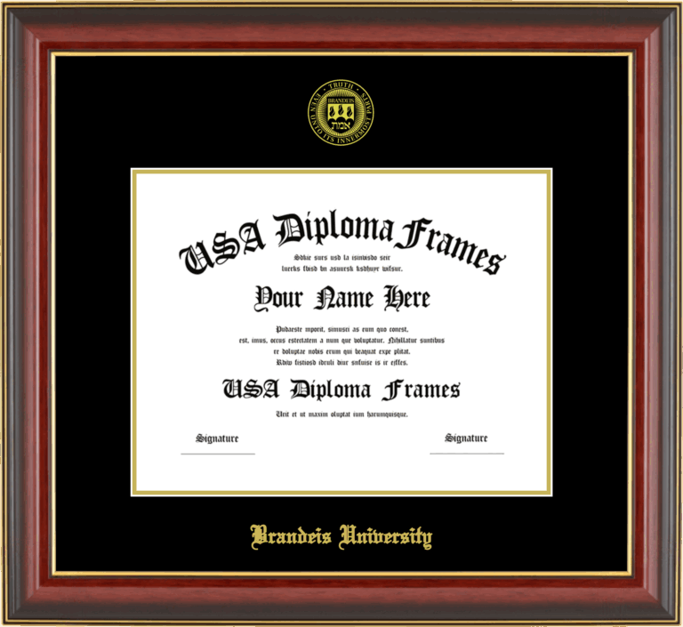 Brandeis University Diploma Frame – Cherry Mahogany Gold Trim Glossy – Black and Gold Mat