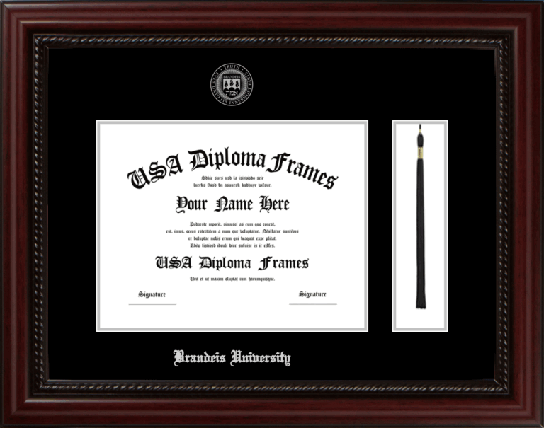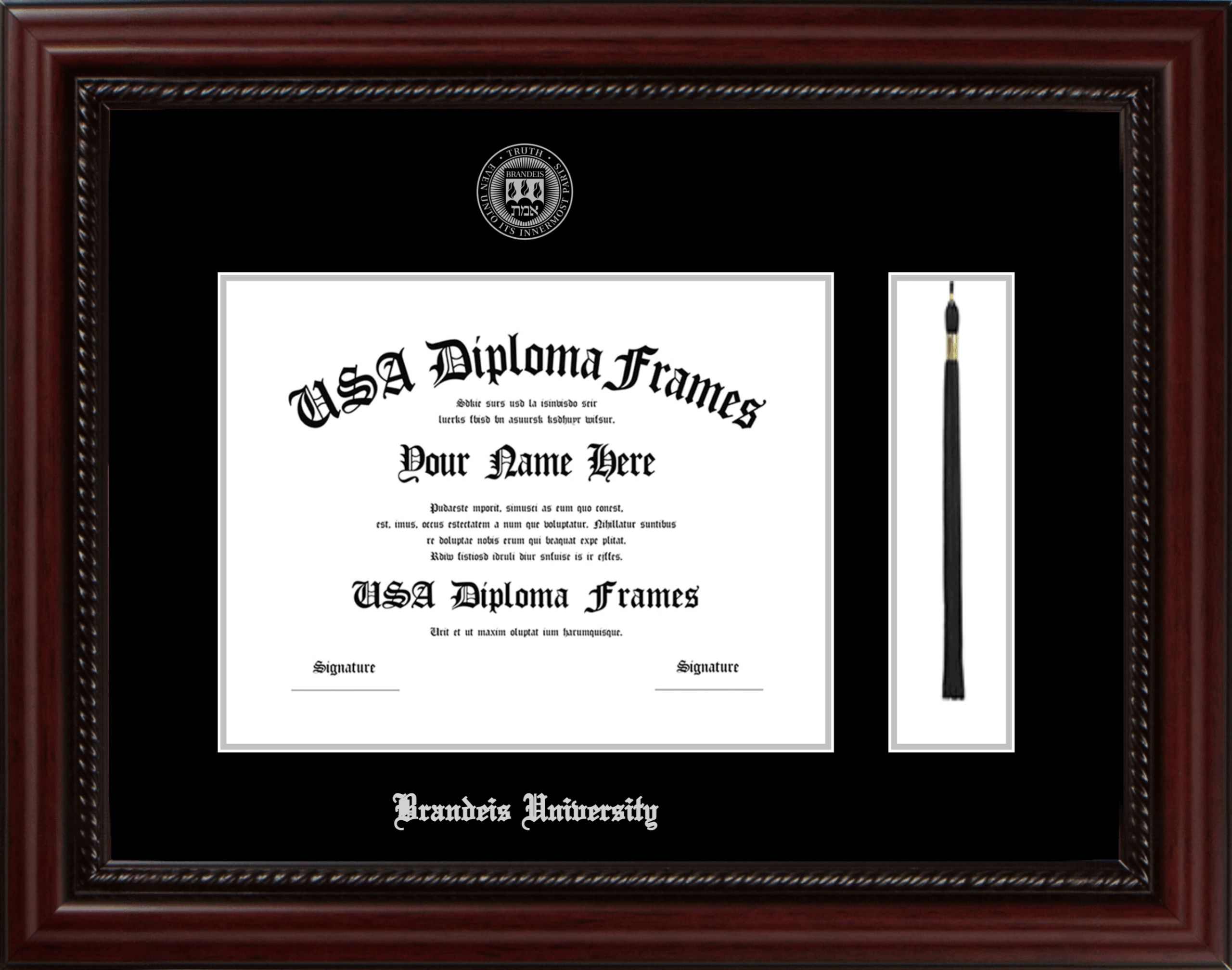 Brandeis University Diploma Frame with Tassel – Executive Cherry Rope – Black and Silver Mat