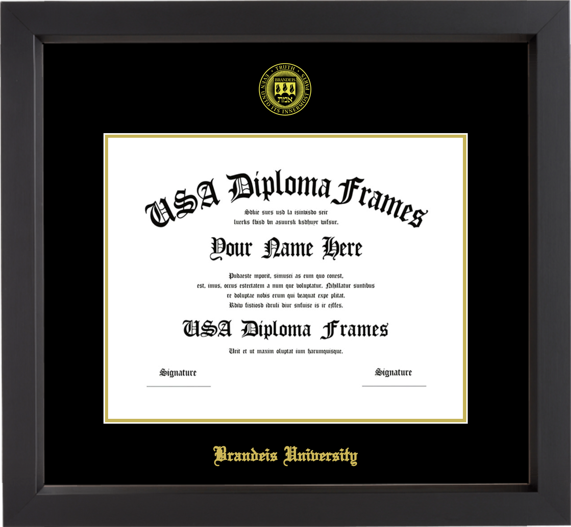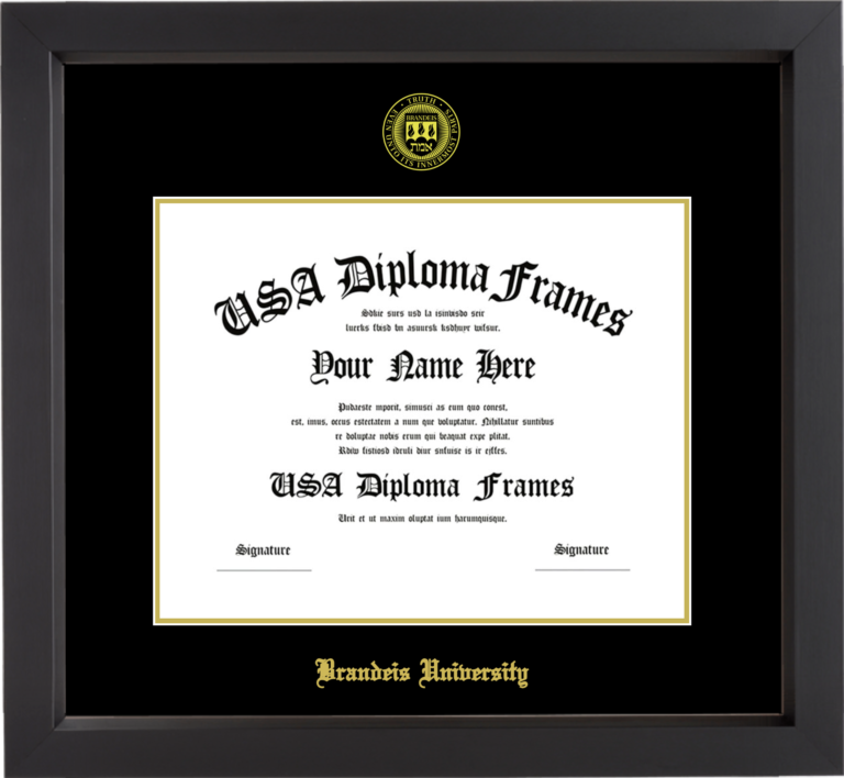 Brandeis University Diploma Frame – Black Matte – Black and Gold Mat