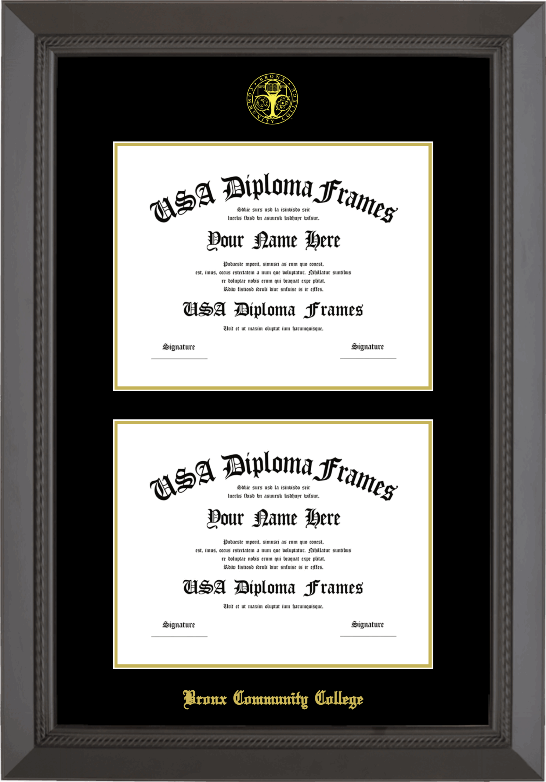 Bronx Community College of the City University of New York Double Diploma Frame – Double Document – Black Rope – Black and Gold Mat