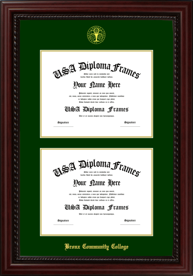Bronx Community College of the City University of New York Double Diploma Frame – Double Document – Executive Cherry Rope – Winter Green and Gold Mat