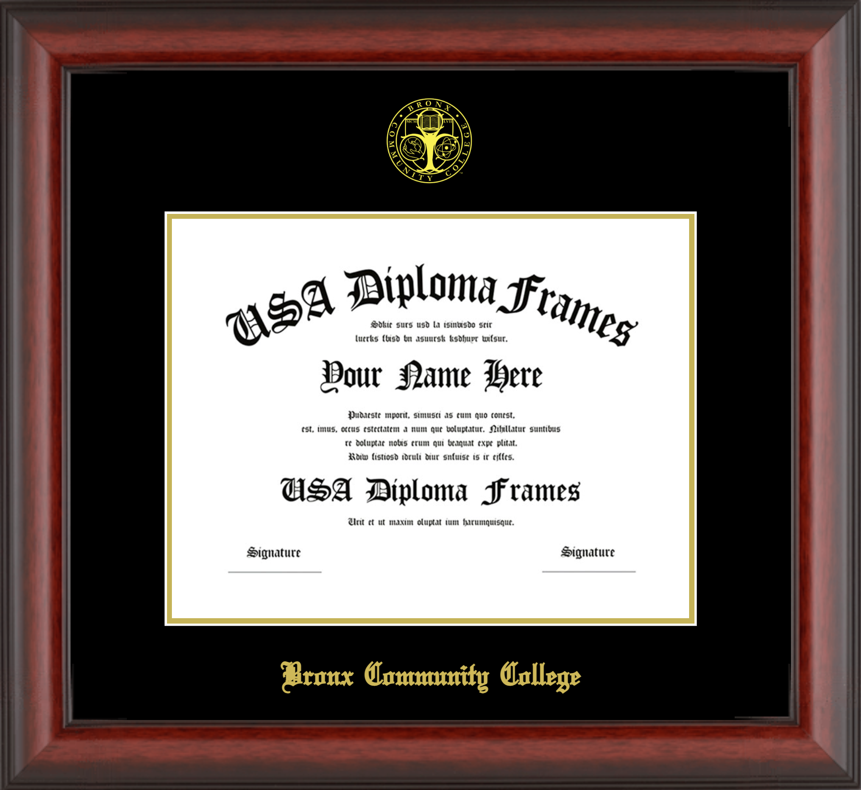 Bronx Community College Diploma Frame – Cherry Mahogany Matte – Black and Gold Mat