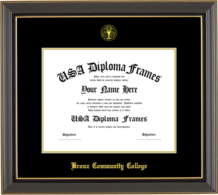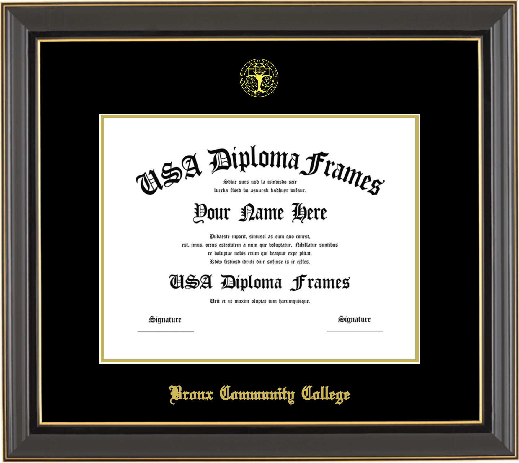 Bronx Community College Diploma Frame – Black Gold Trim Glossy – Black and Gold Mat