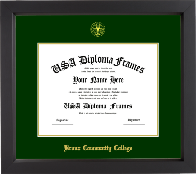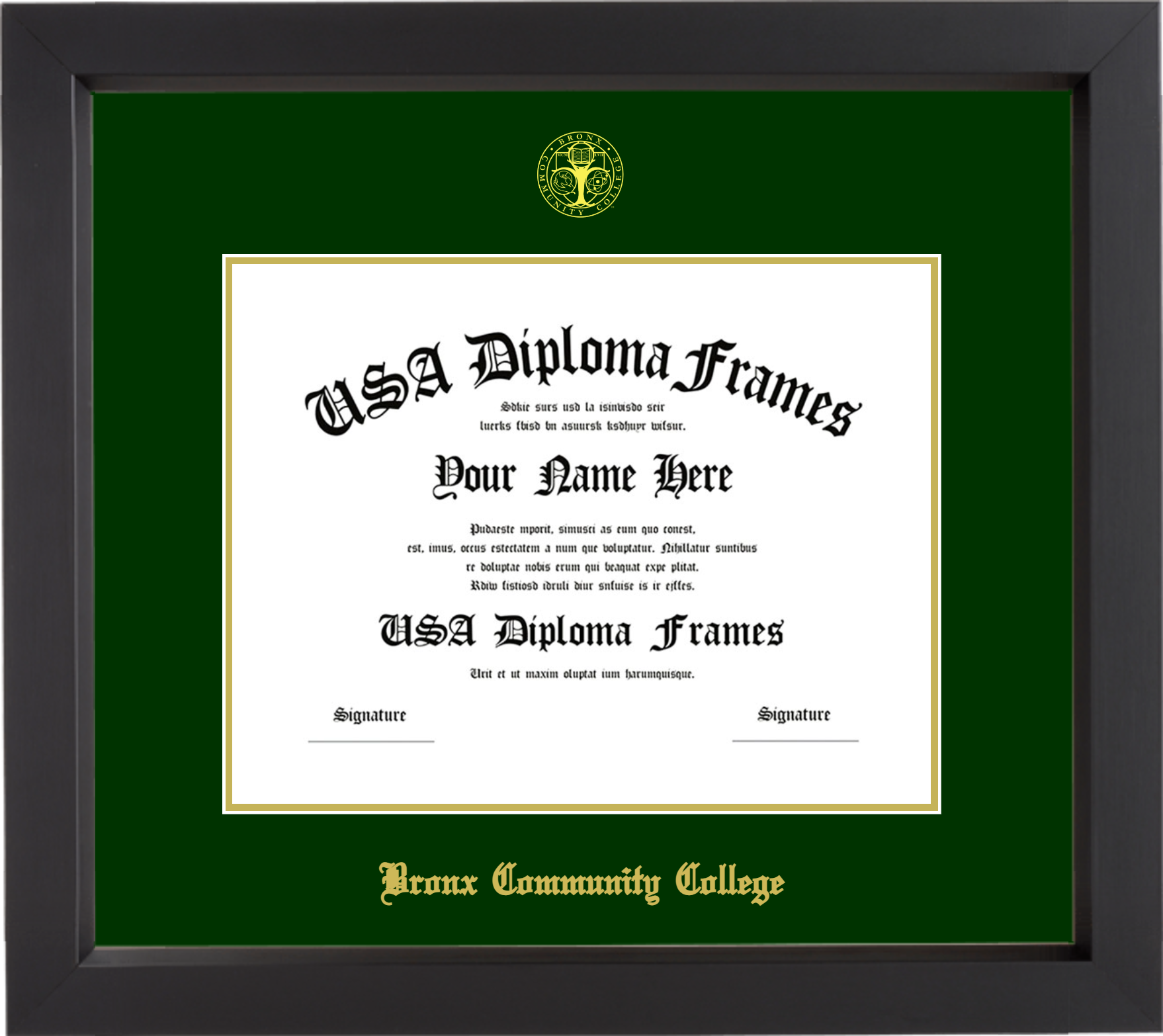 Bronx Community College of the City University of New York – Single Horizontal Document ( Diploma ) – Black Matte – Winter Green Mat – Gold Accent Mat – With Seal(University Seal Gold) – With Gold Embossing (Bronx Community College)
