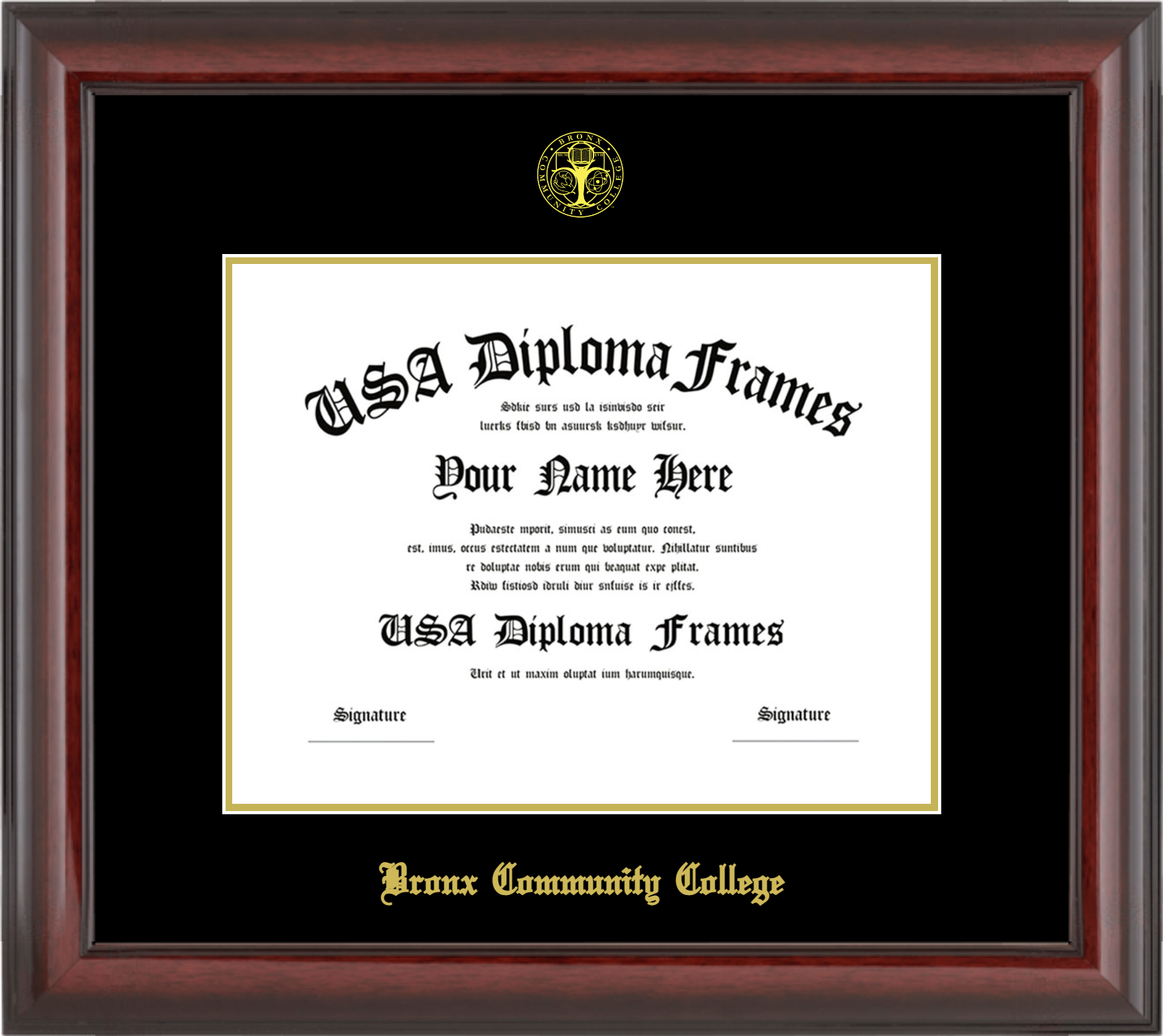 Bronx Community College Diploma Frame – Cherry Mahogany Glossy – Black and Gold Mat