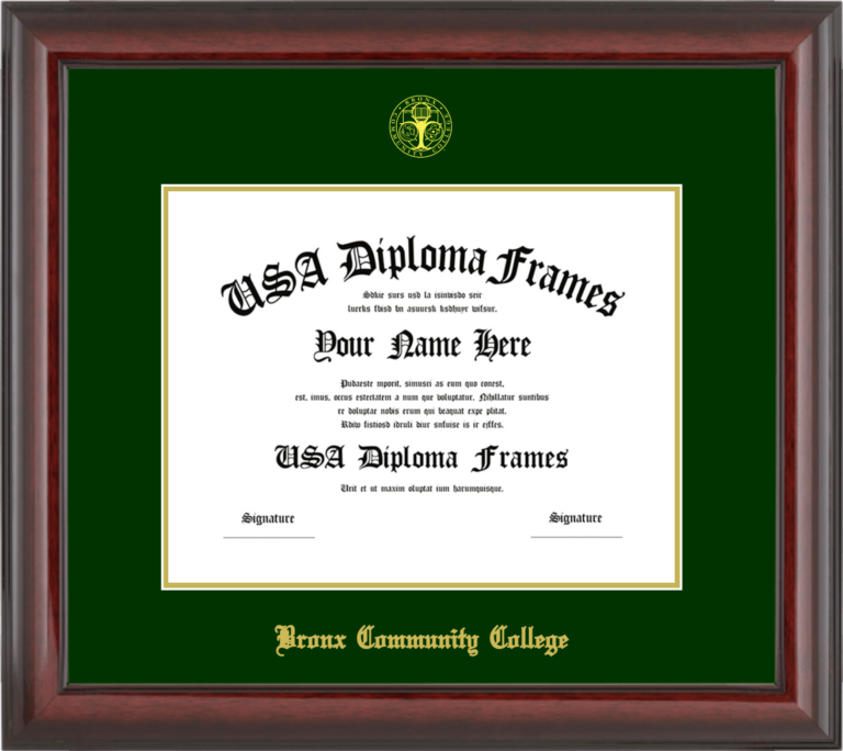 Bronx Community College of the City University of New York – Single Horizontal Document ( Diploma ) – Cherry Mahogany Glossy – Winter Green Mat – Gold Accent Mat – With Seal(University Seal Gold) – With Gold Embossing (Bronx Community College)