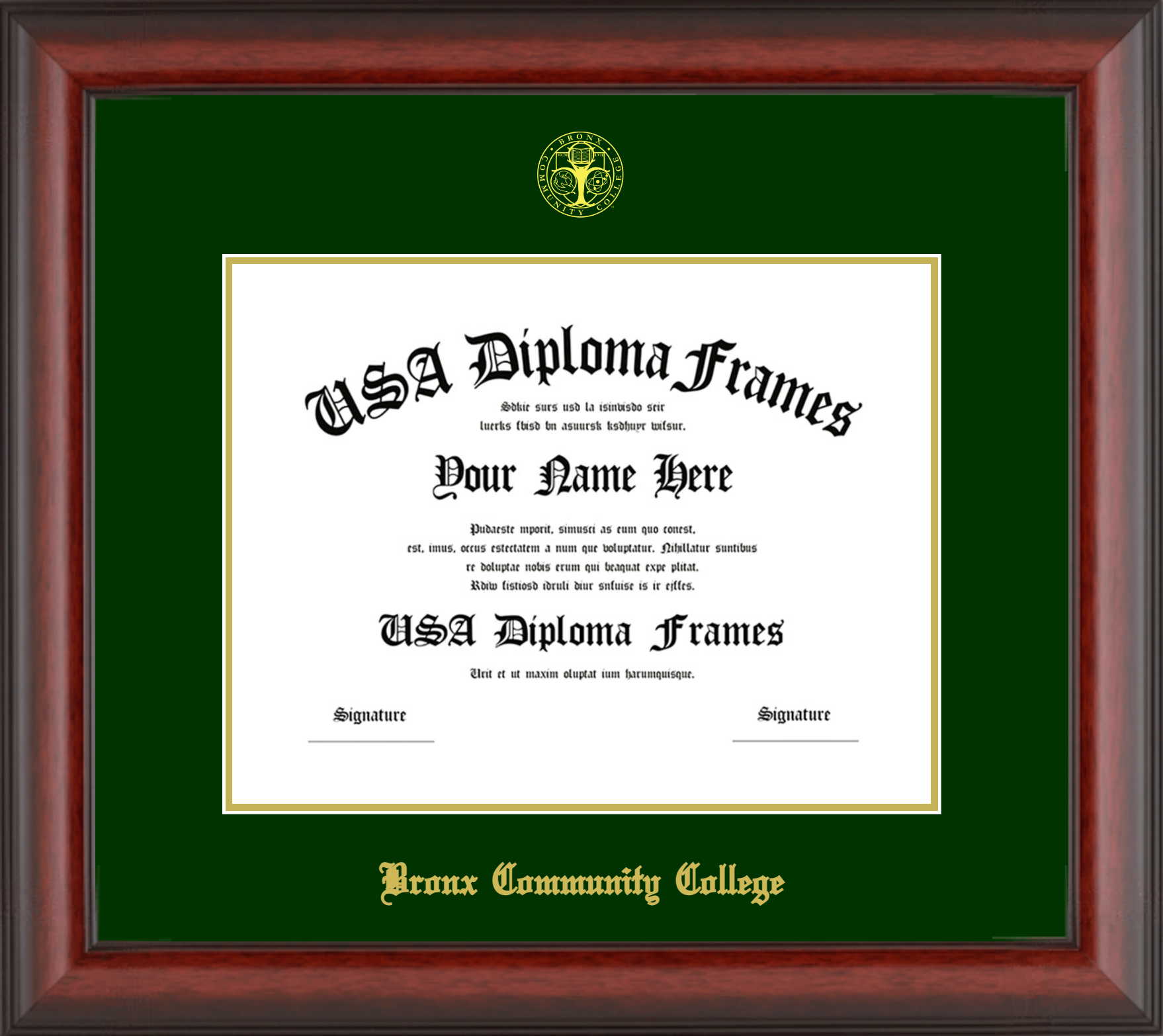 Bronx Community College of the City University of New York – Single Horizontal Document ( Diploma ) – Cherry Mahogany Matte – Winter Green Mat – Gold Accent Mat – With Seal(University Seal Gold) – With Gold Embossing (Bronx Community College)
