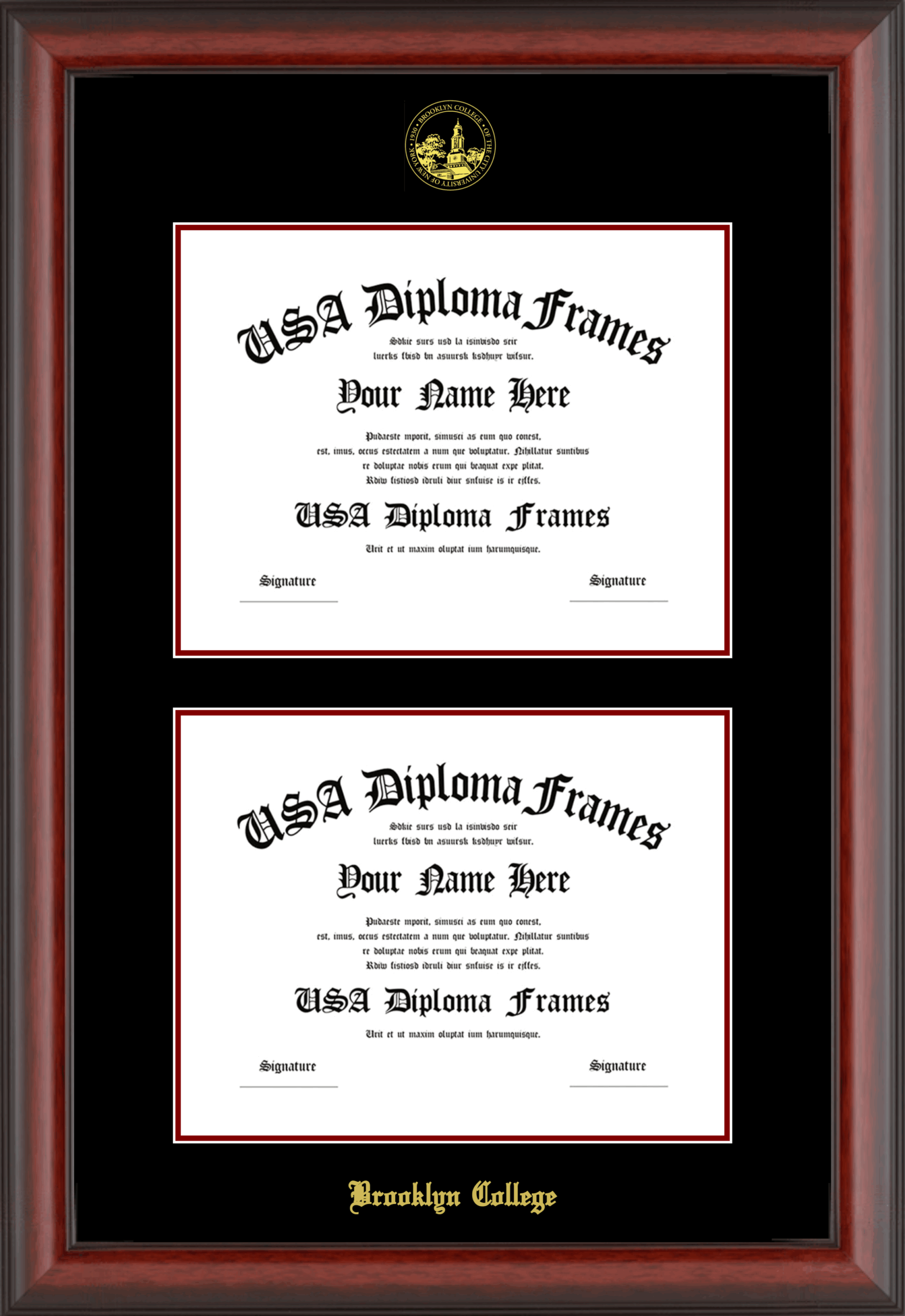 Brooklyn College of the City University of New York Double Diploma Frame – Double Document – Cherry Mahogany Matte – Black and Maroon Mat