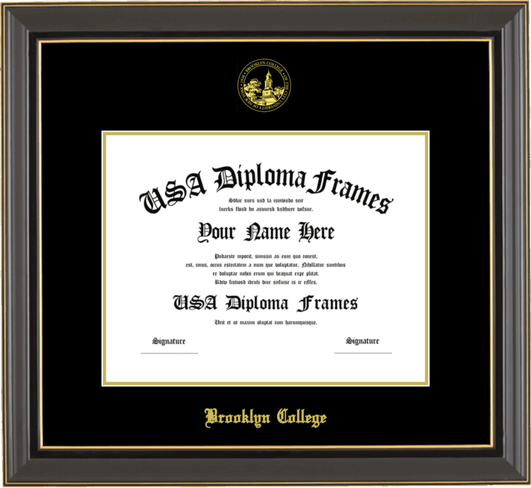 Brooklyn College Diploma Frame – Black Gold Trim Glossy – Black and Gold Mat