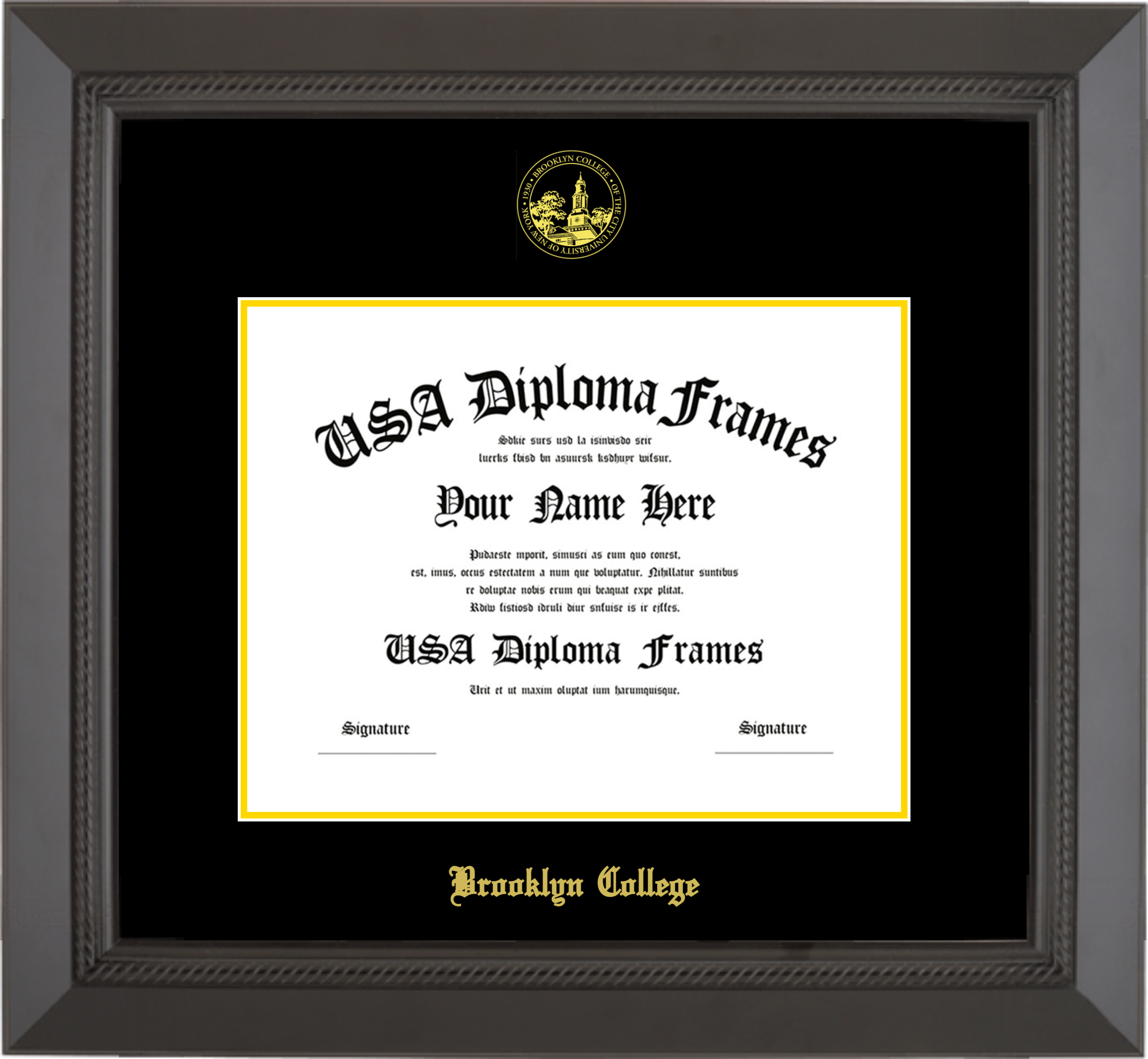 Brooklyn College Diploma with Tassel – Black Rope – Black and Yellow Gold Mat