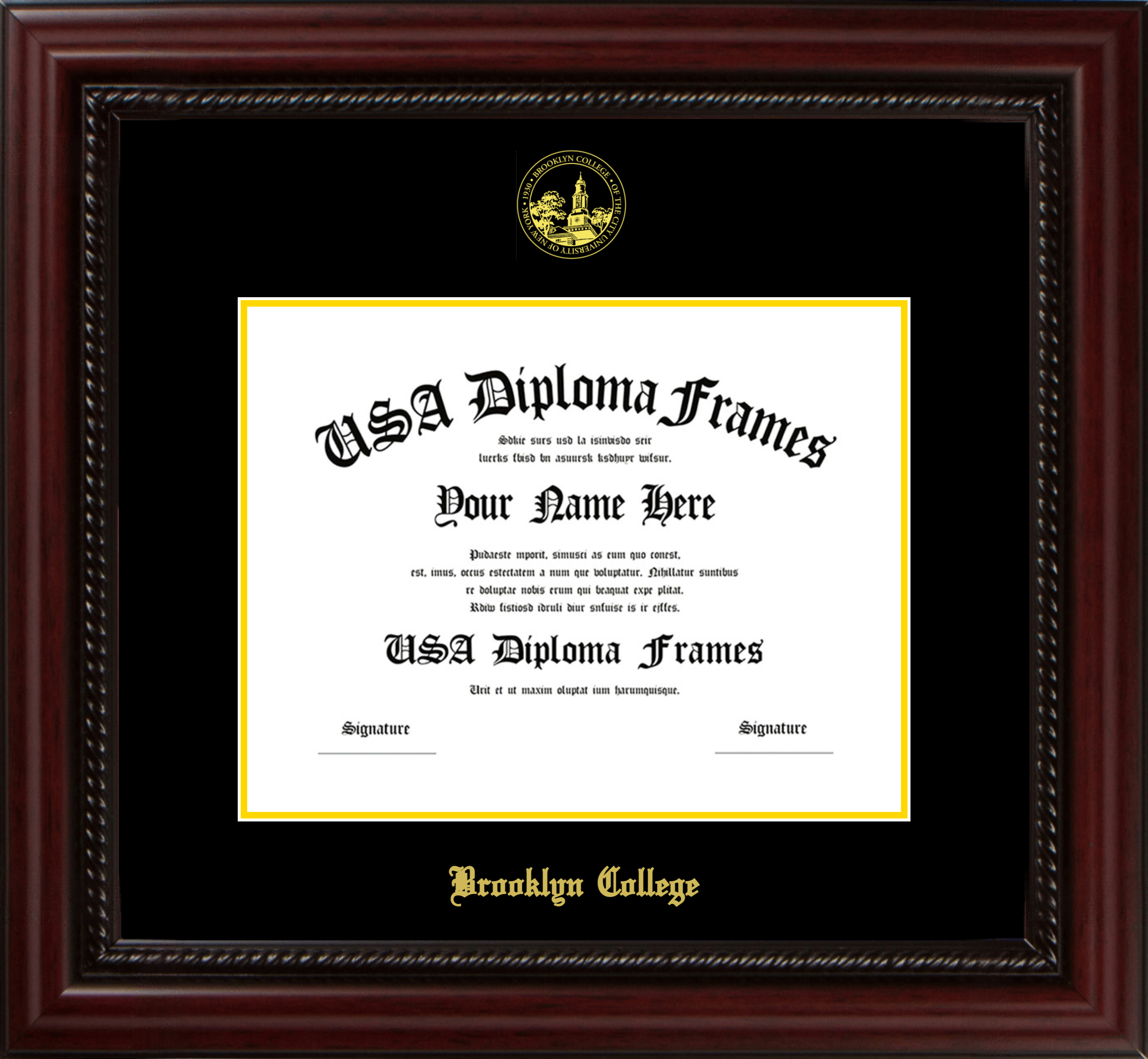 Brooklyn College Diploma Frame – Executive Cherry Rope – Black and Yellow Gold Mat