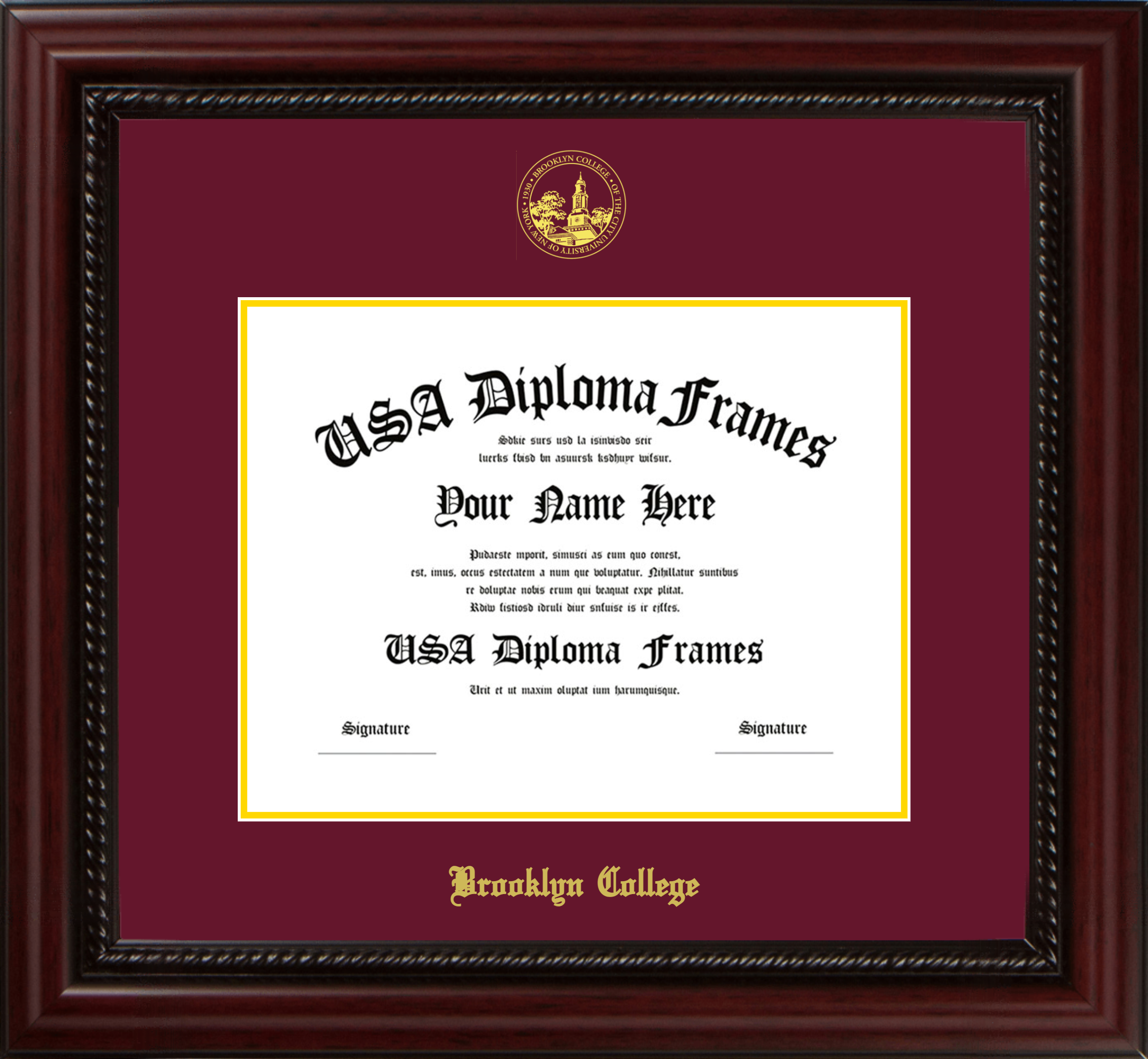Brooklyn College Diploma Frame – Executive Cherry Rope – Maroon and Yellow Gold Mat
