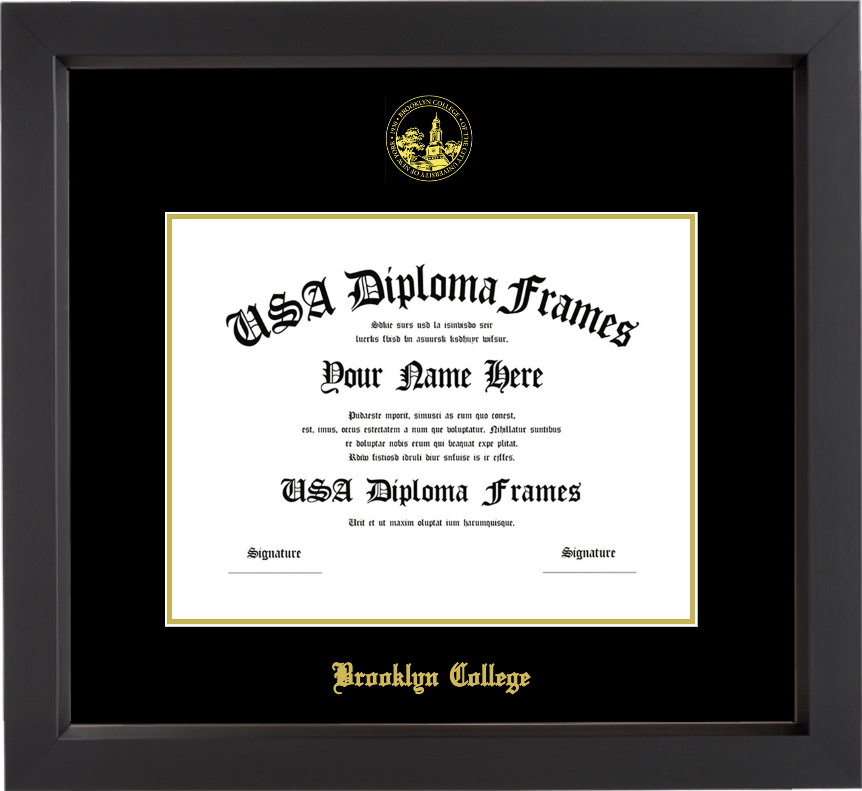 Brooklyn College Diploma Frame – Black Matte – Black and Gold Mat