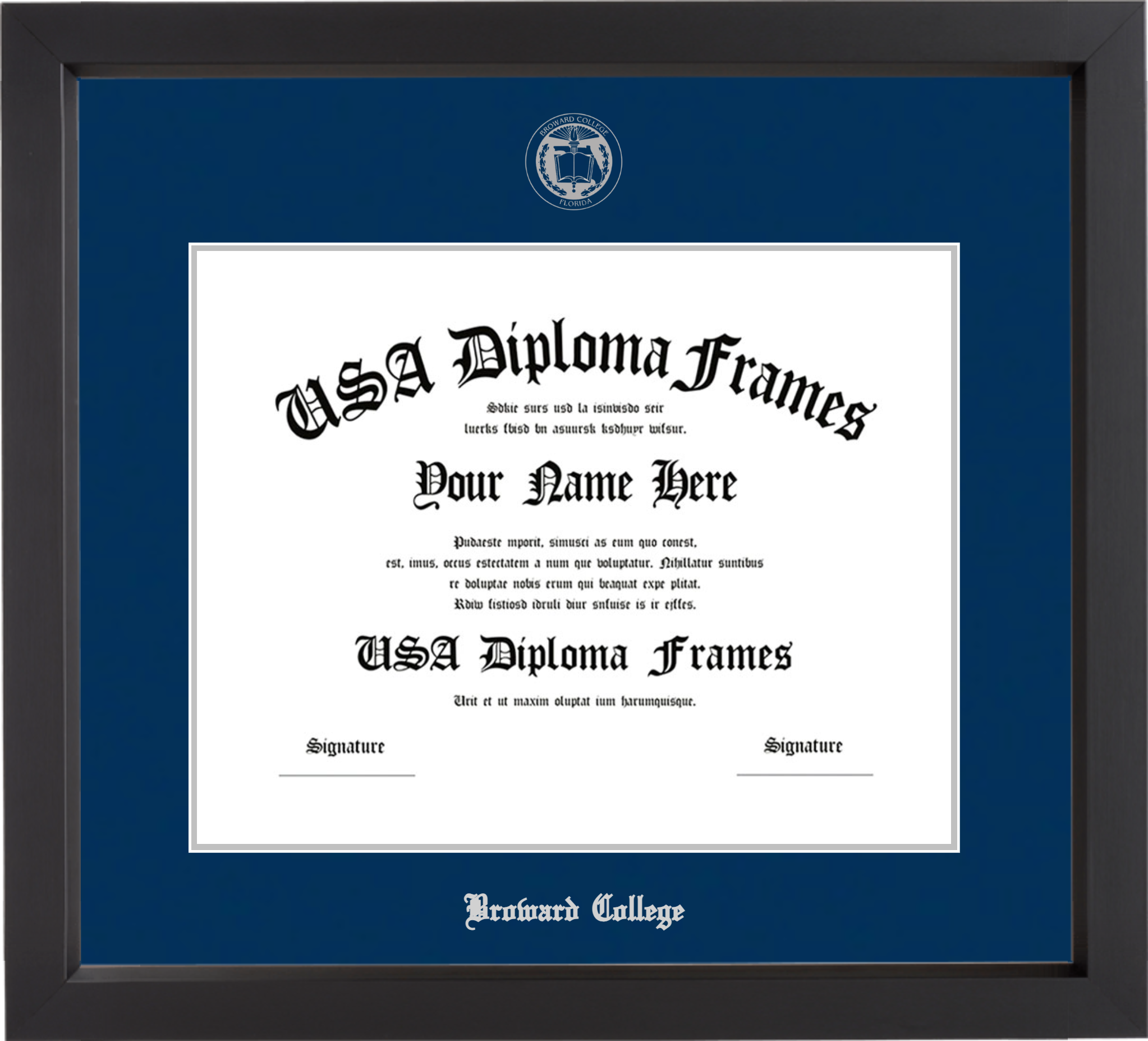 Broward College Diploma Frame – Black Matte – Navy and Silver Mat