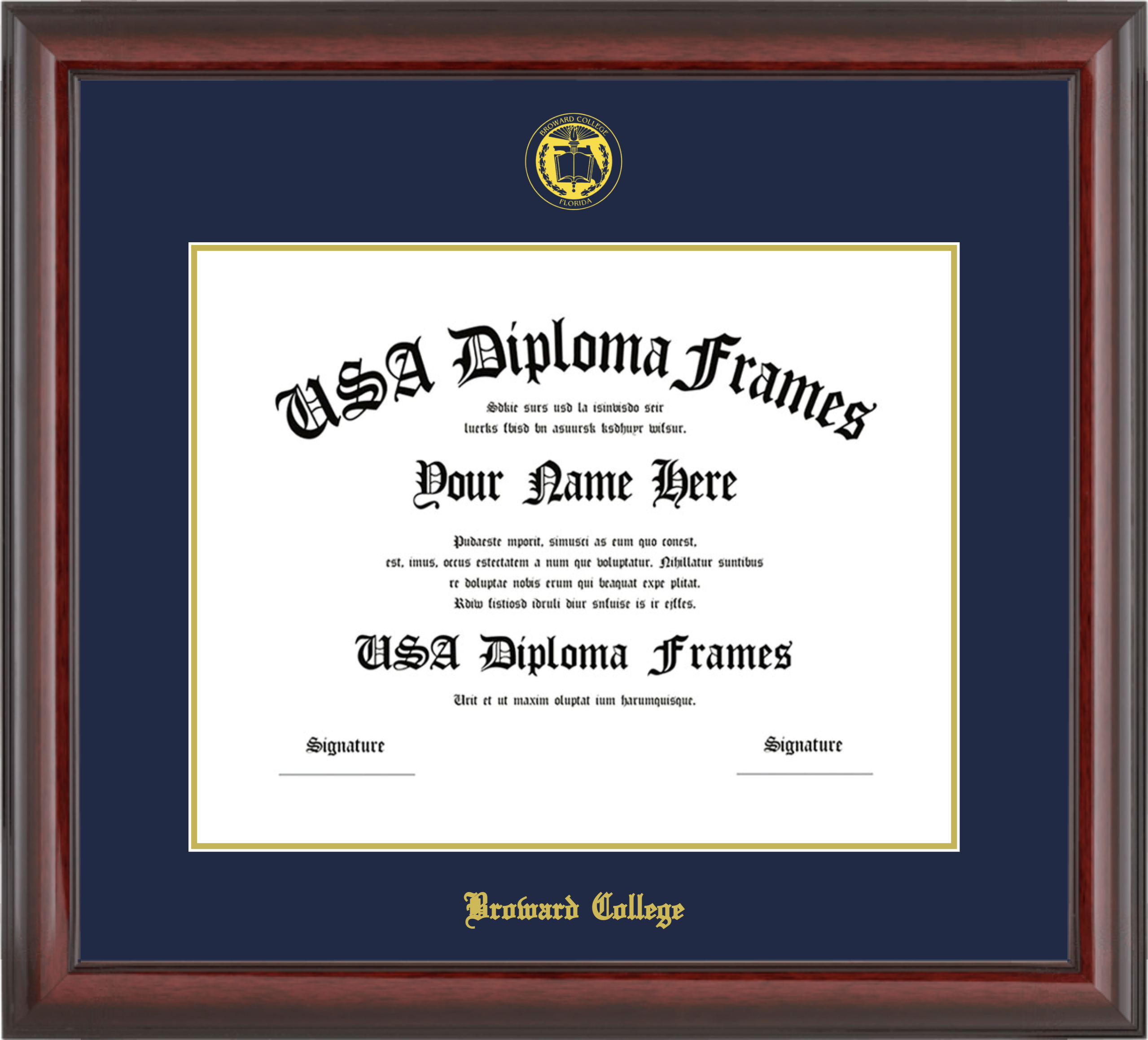 Broward College – Single Horizontal Document ( Diploma ) – Cherry Mahogany Glossy – Navy Mat – Gold Accent Mat – With Seal(University Seal Gold) – With Gold Embossing (Broward College)