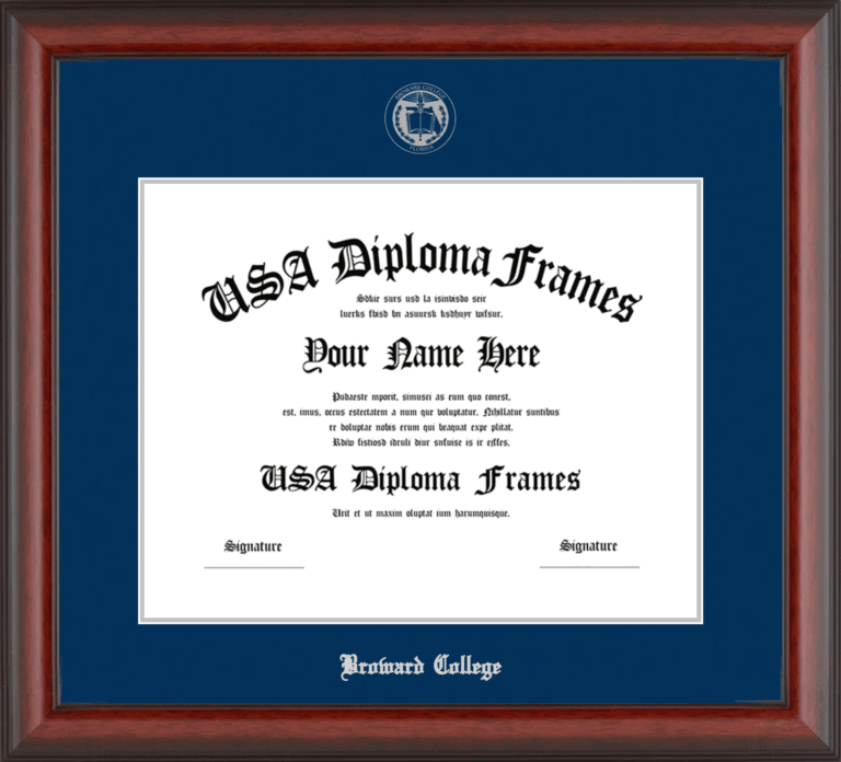 Want to explore more styles? Browse our full range of diploma frame layouts, or visit the Broward College to view options available for your school. Looking for a fully personalized design? Try our custom Frame Builder and create a frame that’s uniquely yours.