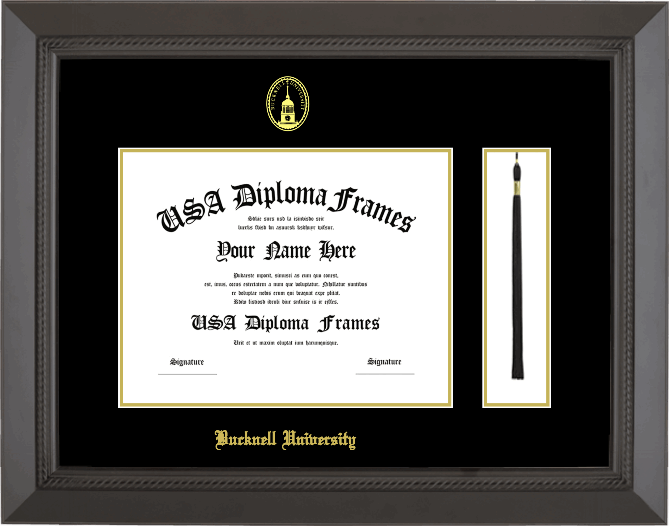 Bucknell University Diploma Frame with Tassel – Black Rope – Black and Gold Mat