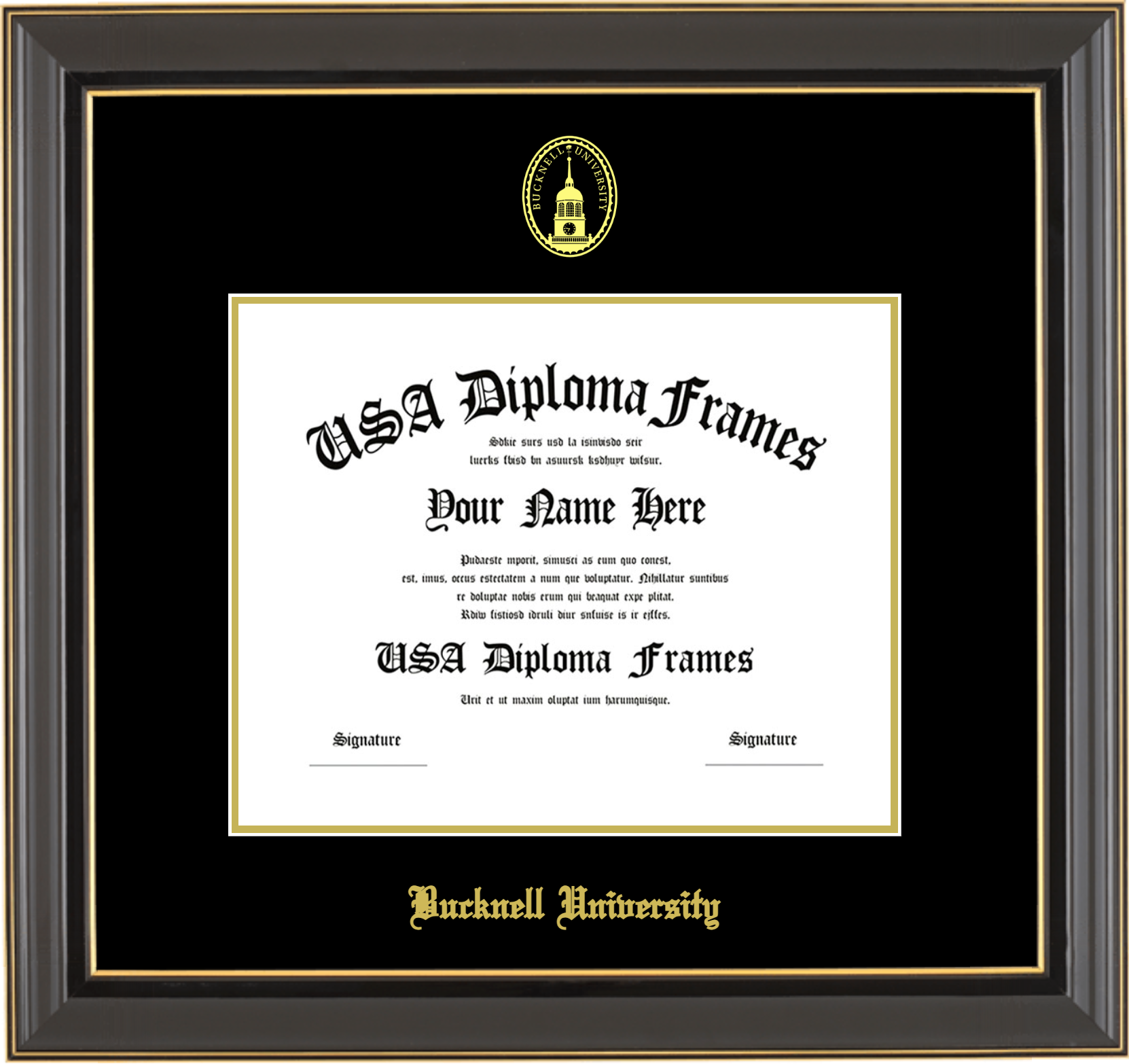 Bucknell University Diploma Frame – Black Gold Trim Glossy – Black and Gold Mat