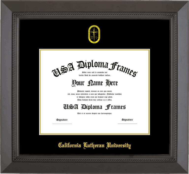 California Lutheran University Diploma Frame with Tassel – Black Rope – Black and Gold Mat