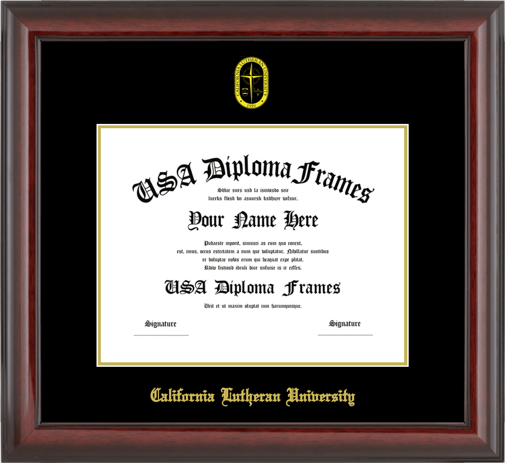 California Lutheran University Diploma Frame – Cherry Mahogany Glossy – Black and Gold Mat