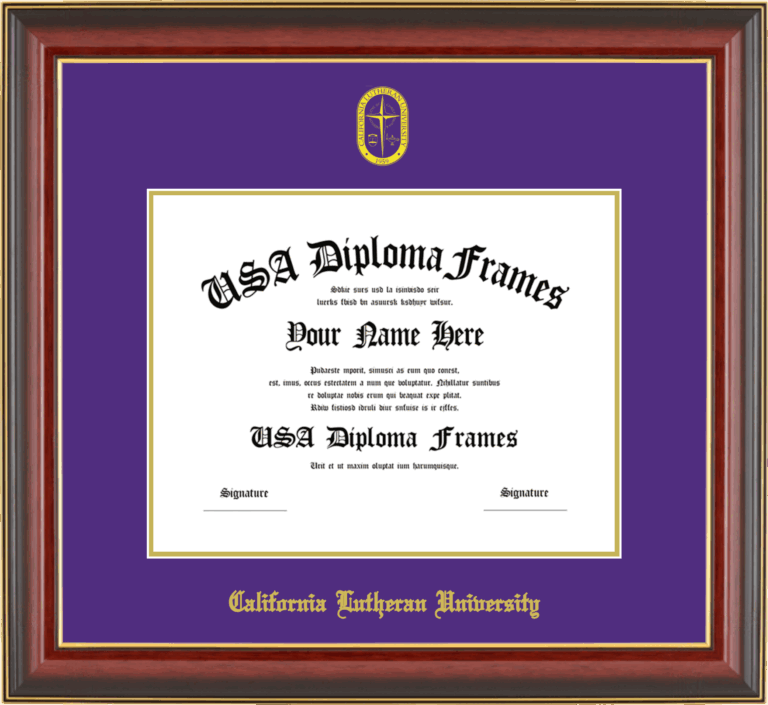 California Lutheran University Diploma Frame – Cherry Mahogany Gold Trim Glossy – Purple and Gold Mat