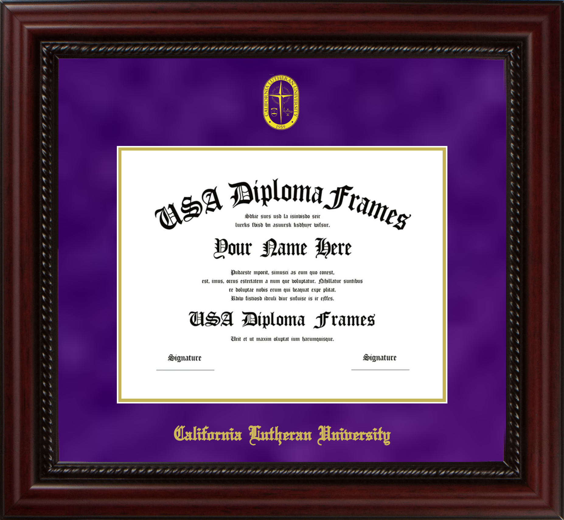 California Lutheran University Diploma Frame with Tassel – Executive Cherry Rope – Purple Suede and Gold Mat