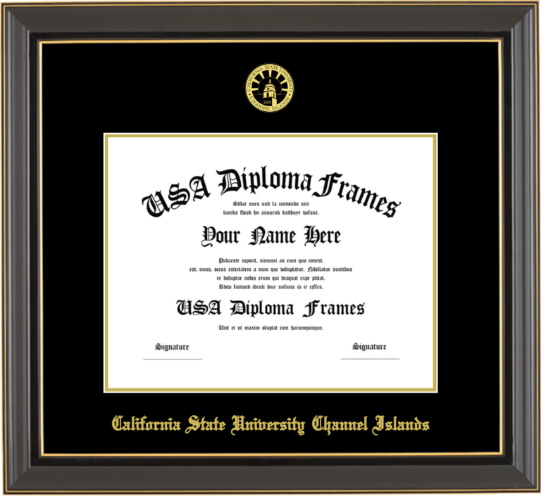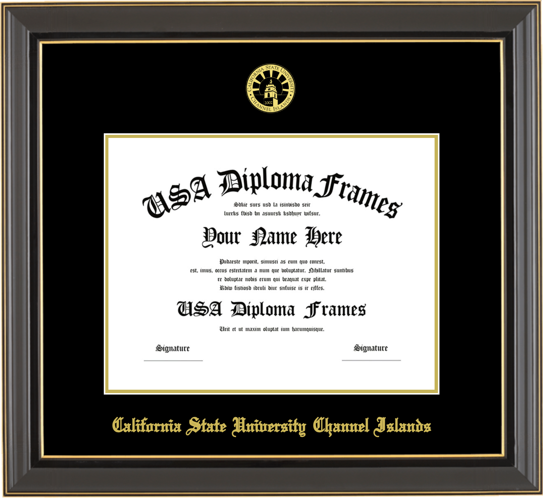 California State University Channel Islands Diploma Frame – Black Gold Trim Glossy – Black and Gold Mat