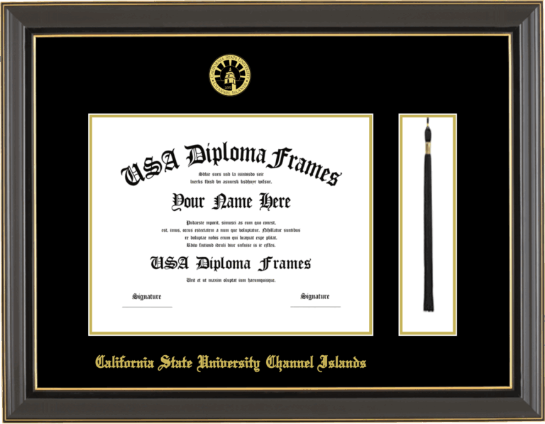 California State University Channel Islands Diploma Frame with Tassel – Black Gold Trim Glossy – Black and Gold Mat