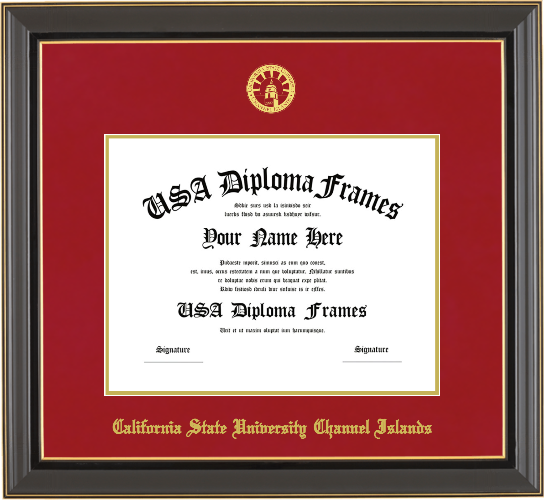 California State University Channel Islands – Single Horizontal Document ( 8 1/2″x11″ ) – Black Gold Trim Glossy – Crimson Mat – Gold Accent Mat – With Seal(University Seal Gold) – With Gold Embossing (California State University Channel Islands)