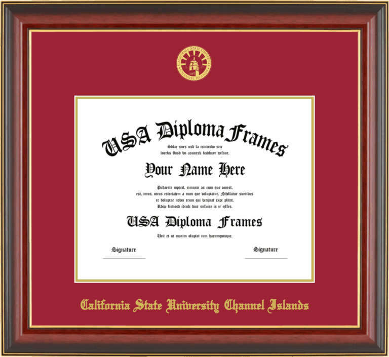 California State University Channel Islands Diploma Frame – Cherry Mahogany Gold Trim Glossy – Crimson and Gold Mat