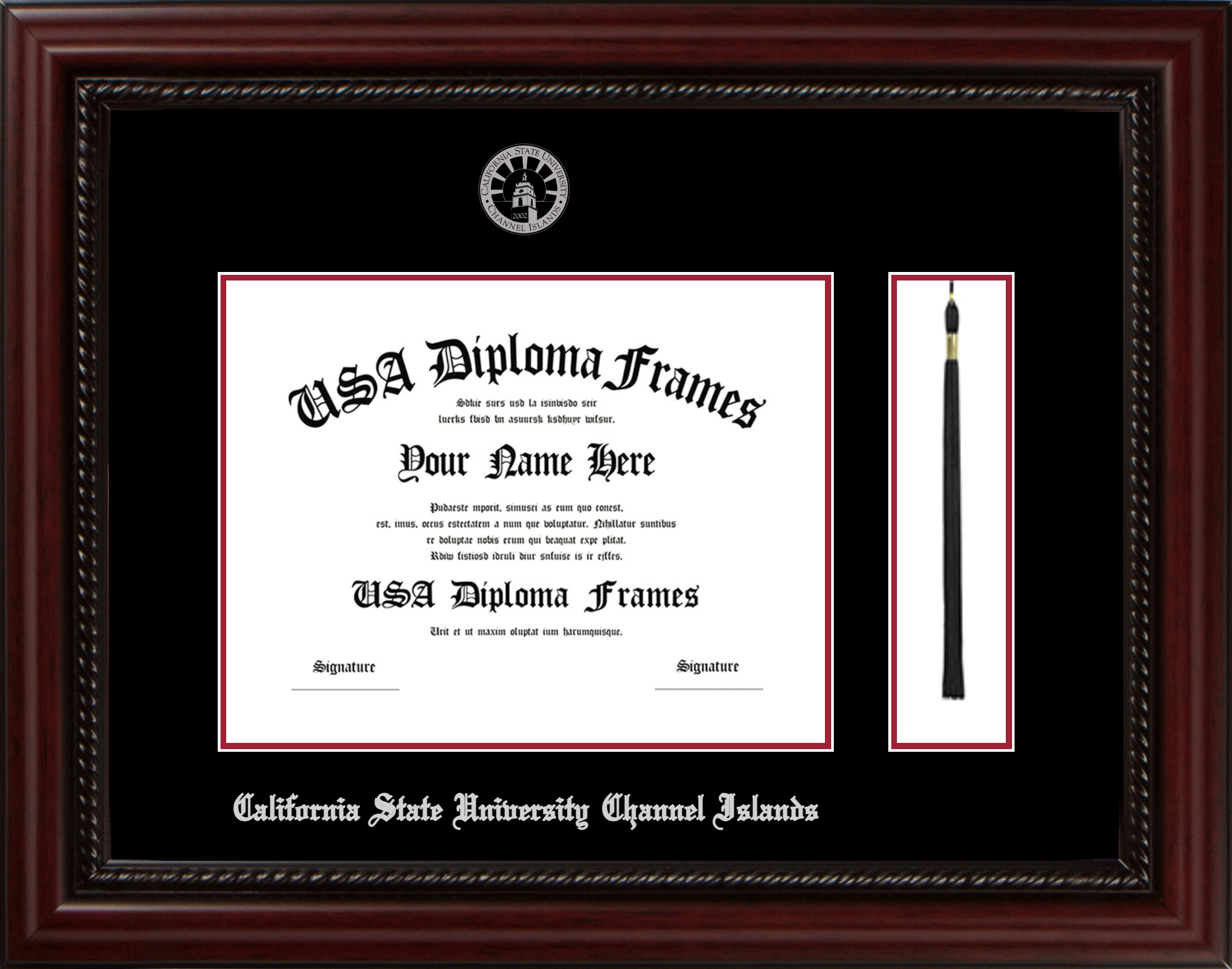 California State University Channel Islands Diploma Frame with Tassel – Executive Cherry Rope – Black and Crimson Mat