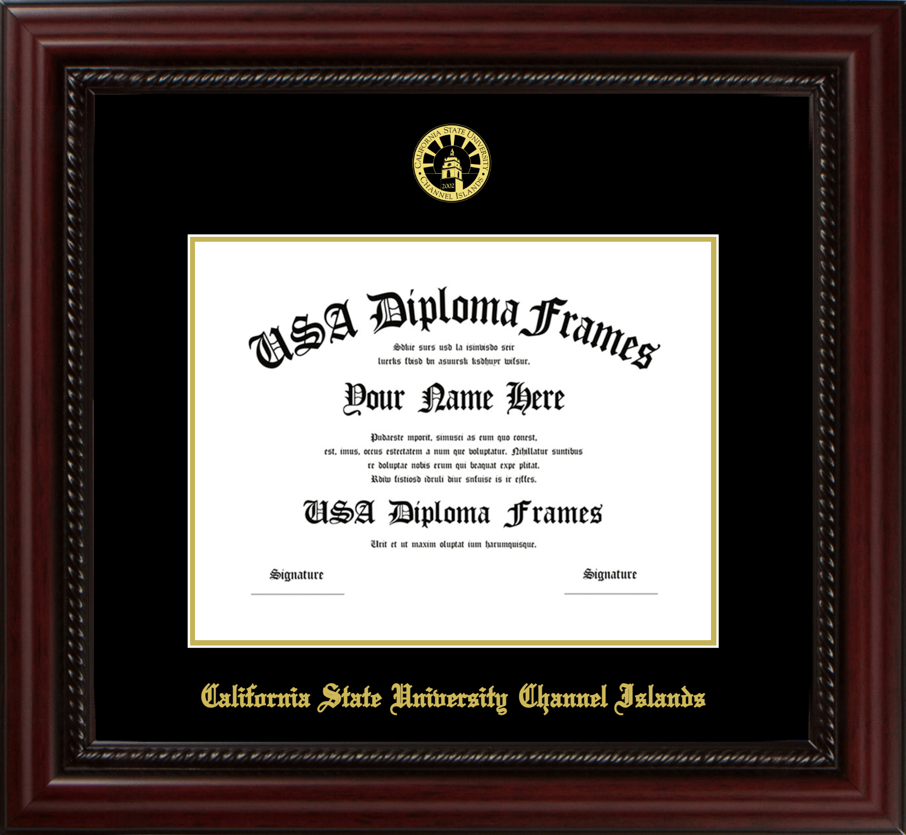 California State University Channel Islands Diploma Frame – Executive Cherry Rope – Black and Gold Mat