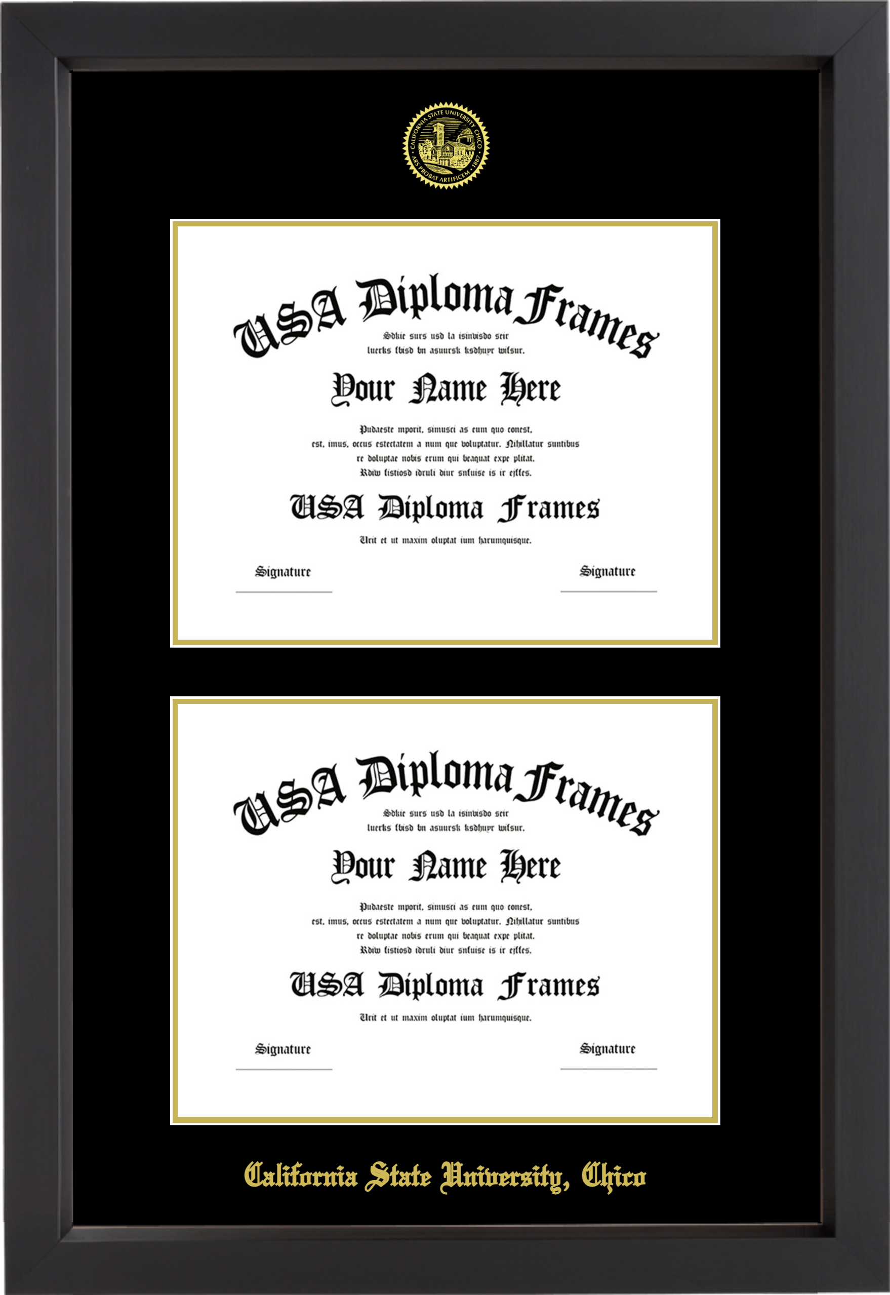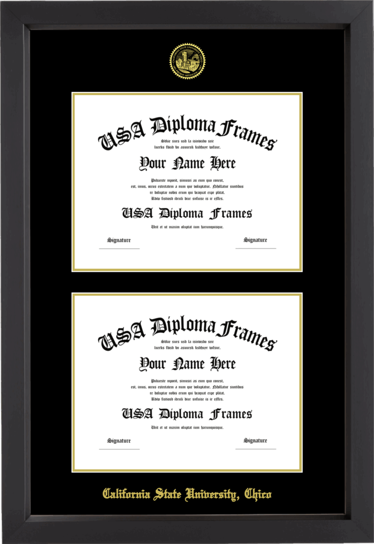 California State University, Chico Double Diploma Frame – Double Document – Black Matte – Black and Gold Mat