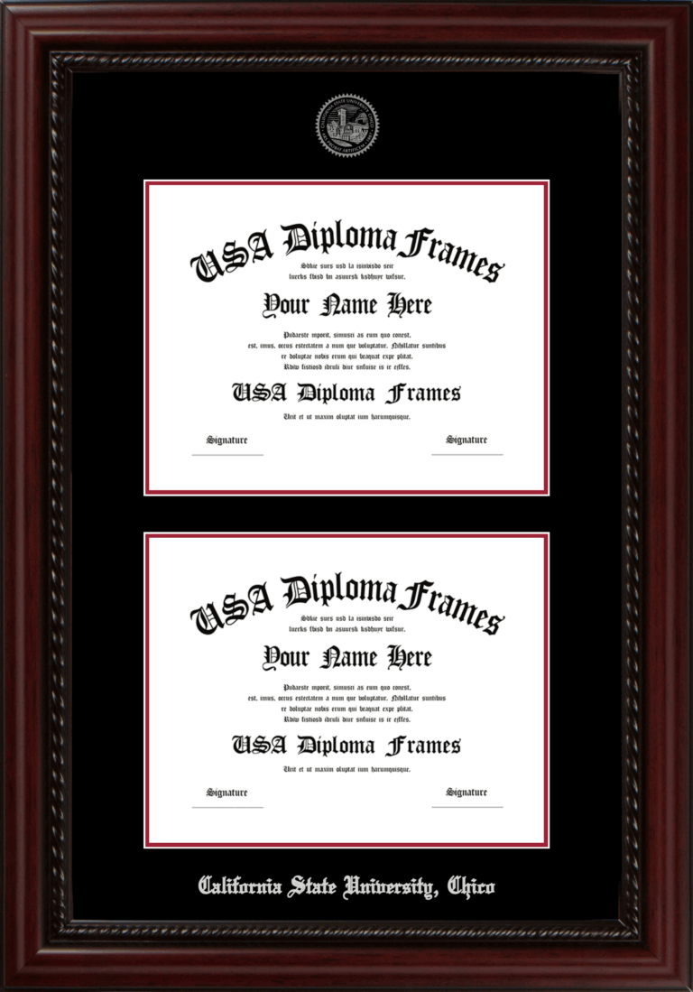 California State University, Chico Double Diploma Frame – Double Document – Executive Cherry Rope – Black and Crimson Mat