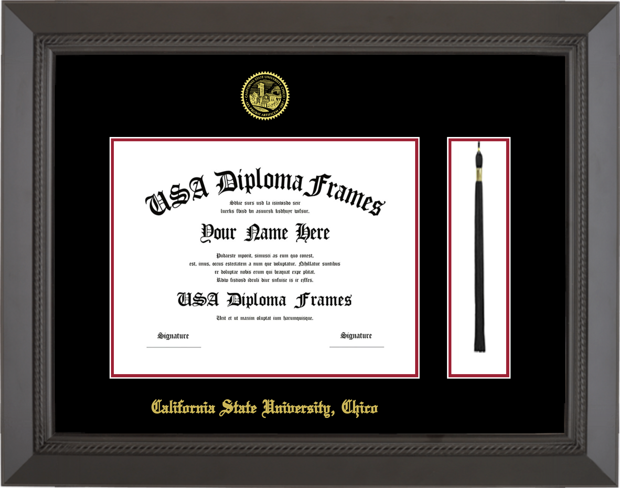 California State University, Chico Diploma Frame with Tassel – Black Rope – Black and Crimson Mat