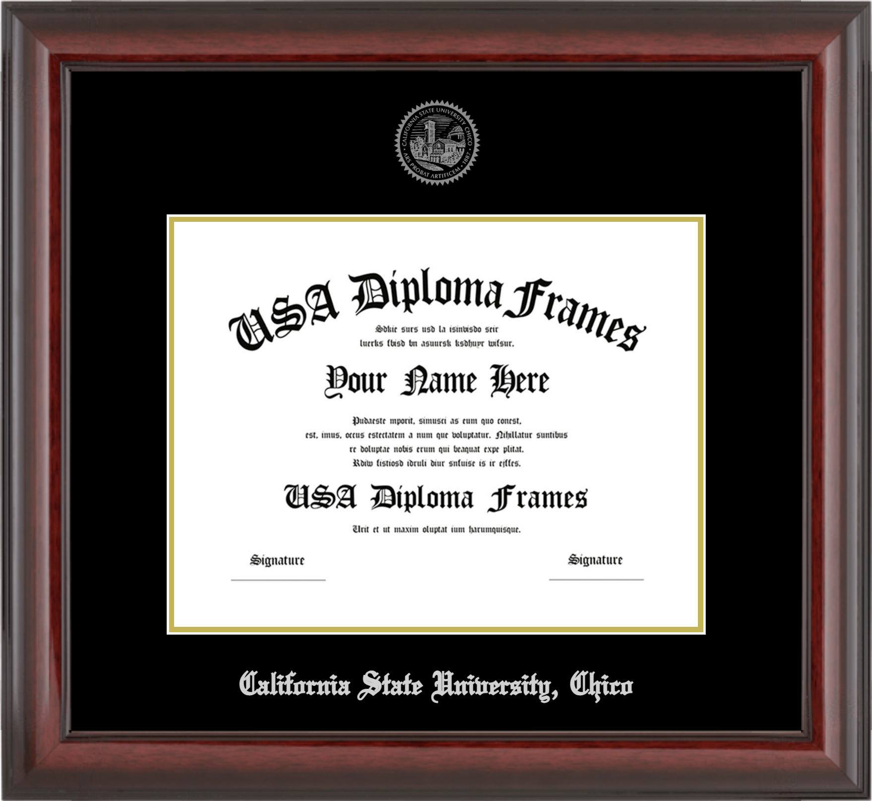 California State University, Chico Diploma Frame – Cherry Mahogany Glossy – Black and Gold Mat