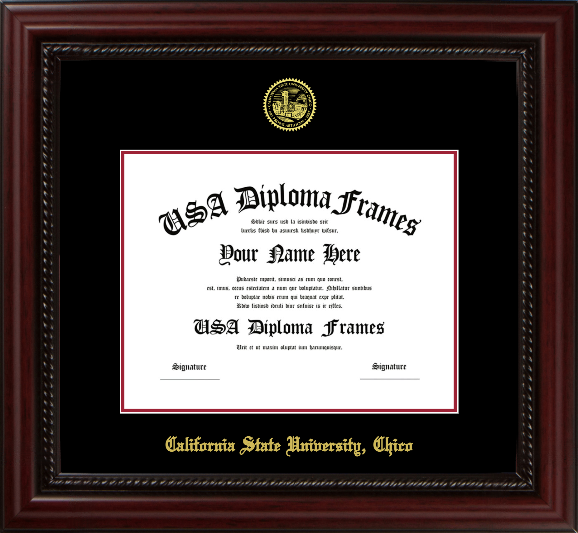 California State University, Chico Diploma Frame – Executive Cherry Rope – Black and Crimson Mat